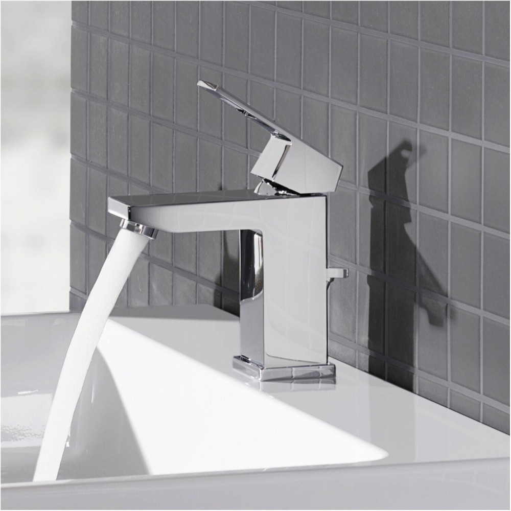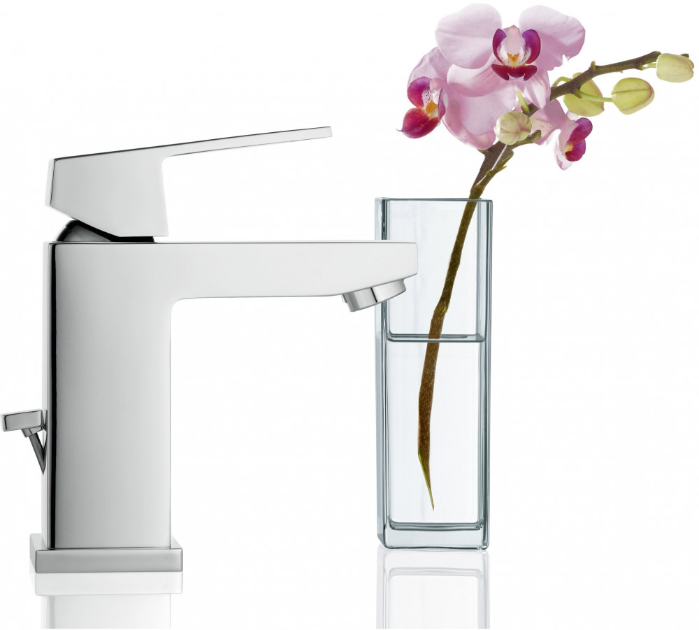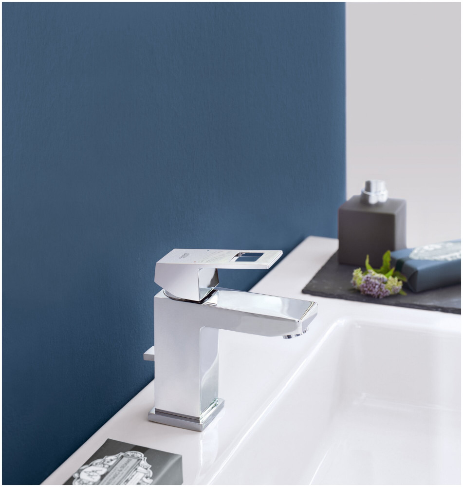 Этот смеситель Grohe Eurocube придаст вашей ванной комнате неповторимый вид. Продуманный до мелочей дизайн, четкие формы и расширенные функциональные возможности идеально сочетаются в нем. Однорычажный смеситель имеет удобную высоту для всех обычных раковин. Сливной бачок легко открывается и закрывается с помощью встроенного выдвижного стержня. Благодаря технологии Grohe SilkMove рычаг управления перемещается очень плавно, что позволяет легко регулировать температуру и объем воды. Благодаря запатентованной технологии Grohe EcoJoy кран обеспечивает мощную подачу воды, при этом расход воды ограничивается до 5,7 литров в минуту. Выполненный в ослепительном и устойчивом к царапинам хроме Grohe StarLight, он будет сверкать долгие годы. Благодаря силиконовым насадкам Speed Clean, которые предотвращают образование известкового налета, для поддержания чистоты носика достаточно быстро протереть его пальцами.