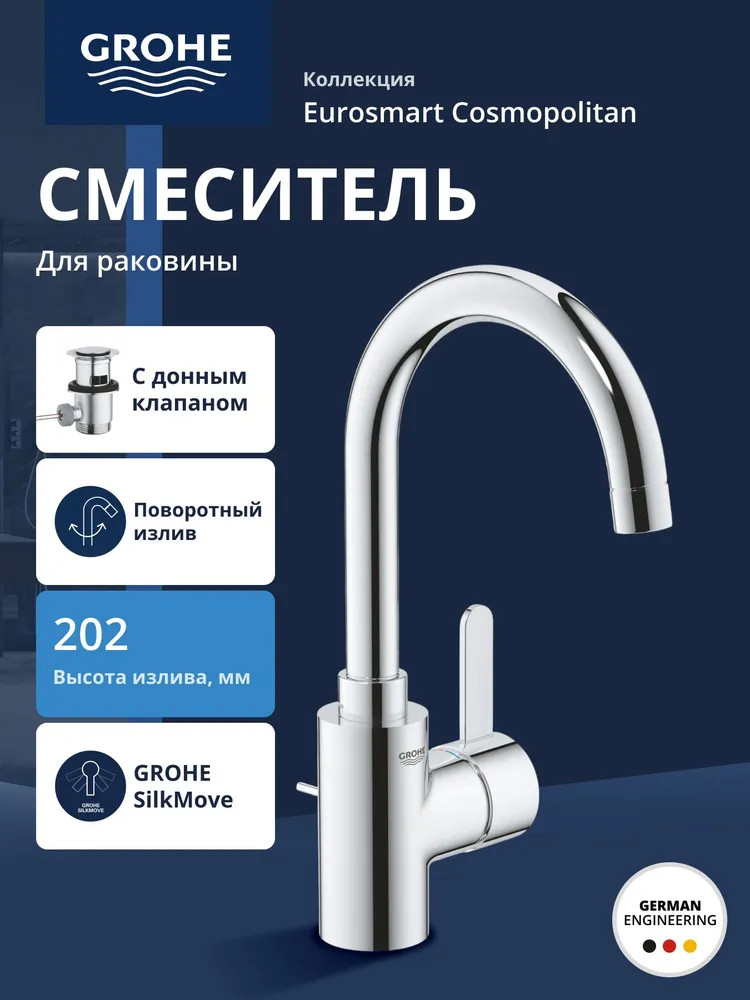 Этот универсальный смеситель имеет высокий поворотный излив для дополнительного удобства и оснащен технологией Grohe, поэтому им приятно пользоваться. Даже мытье волос над раковиной не составит труда. Разработанный с использованием технологии керамического картриджа, контроль расхода и температуры воды плавный и точный, а функция экономии воды помогает экономить ваш бюджет. Он ограничивает расход до 5,7 л/мин, но при этом обеспечивает полное удовлетворение от принятия душа. Этот глянцевый смеситель для раковины имеет сливной клапан и выполнен из хрома, поэтому его легко чистить, и он очень долговечен. Этот простой в установке смеситель также оснащен нашей системой легкого монтажа. Это означает, что вы можете установить его вдвое быстрее обычного!