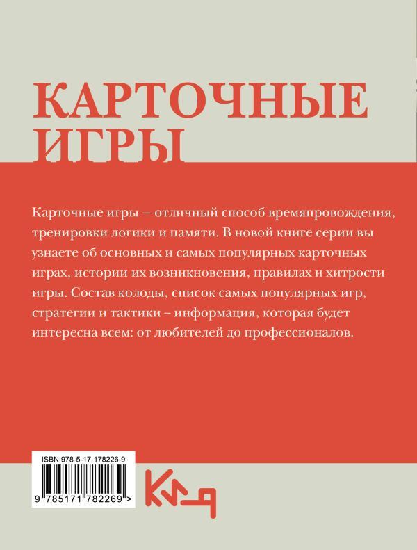 Серия: Четко и по делу «Как отличить флеш от стрита? Почему в бридже так важны „козыри“? Как не „прогореть“ в преферансе и когда стоит блефовать в покере?» — эти вопросы встают перед каждым, кто садится за карточный стол, будь то семейный вечер или серьезная игра. Перед вами незаменимый гайд, который откроет мир популярных карточных игр от классики до современных хитов. Внутри вы найдете не только четкие и понятные правила самых распространенных игр (покер, бридж, преферанс, дурак, кинг и многие другие), но и ценные хитрости, стратегии и тактические приемы, которые помогут вам не просто играть, а играть на победу и получать удовольствие! |