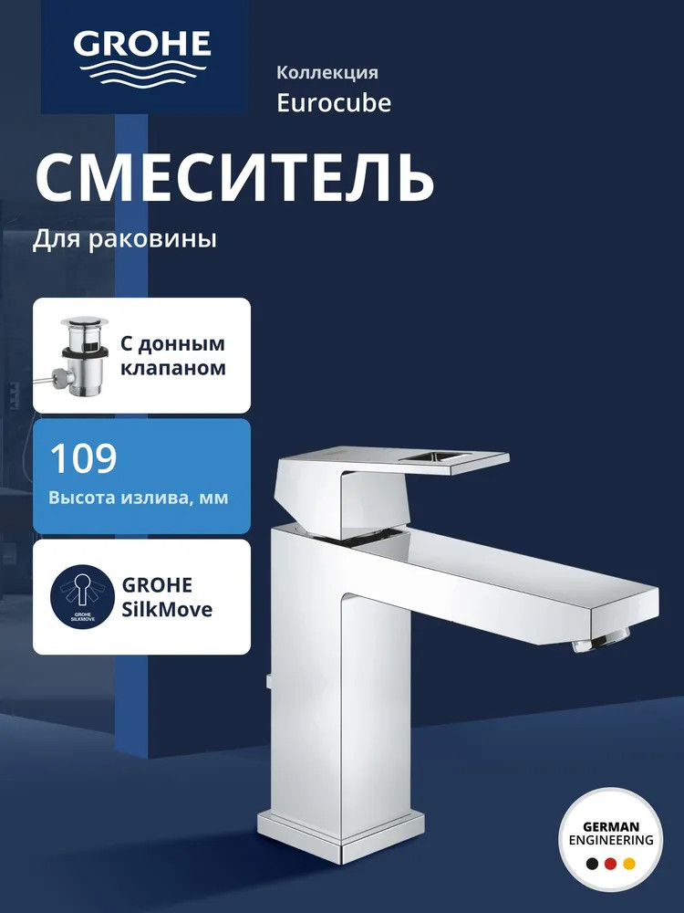 Этот однорычажный смеситель, созданный с использованием уникального сочетания острого современного дизайна и роскошной производительности Grohe Eurocube, станет потрясающим дополнением к вашей ванной комнате. Благодаря изливу средней высоты и сливному клапану он также предлагает множество передовых функциональных возможностей. Температура и объем воды легко контролируются рычагом, который движется очень плавно благодаря нашему керамическому картриджу. Запатентованная система экономии воды означает, что вы можете наслаждаться впечатляющим потоком воды, даже если потребление автоматически сокращается до 50%. Выполненный в ослепительном и устойчивом к царапинам хроме, он имеет блеск, который сохранится на долгие годы. А система монтажа обеспечивает быструю и беспроблемную установку. Простое, но изысканное обновление!
