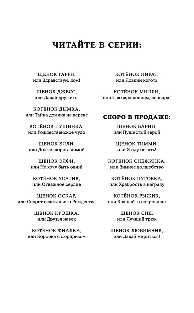 Эта серия книг про добрые истории о животных-питомцах оказалась просто находкой! Дочка читает книжки запоем (7 лет), в результате мы скупили всю серию. Для юных малышек - прекрасный вариант для первого опыта самостоятельного чтения.