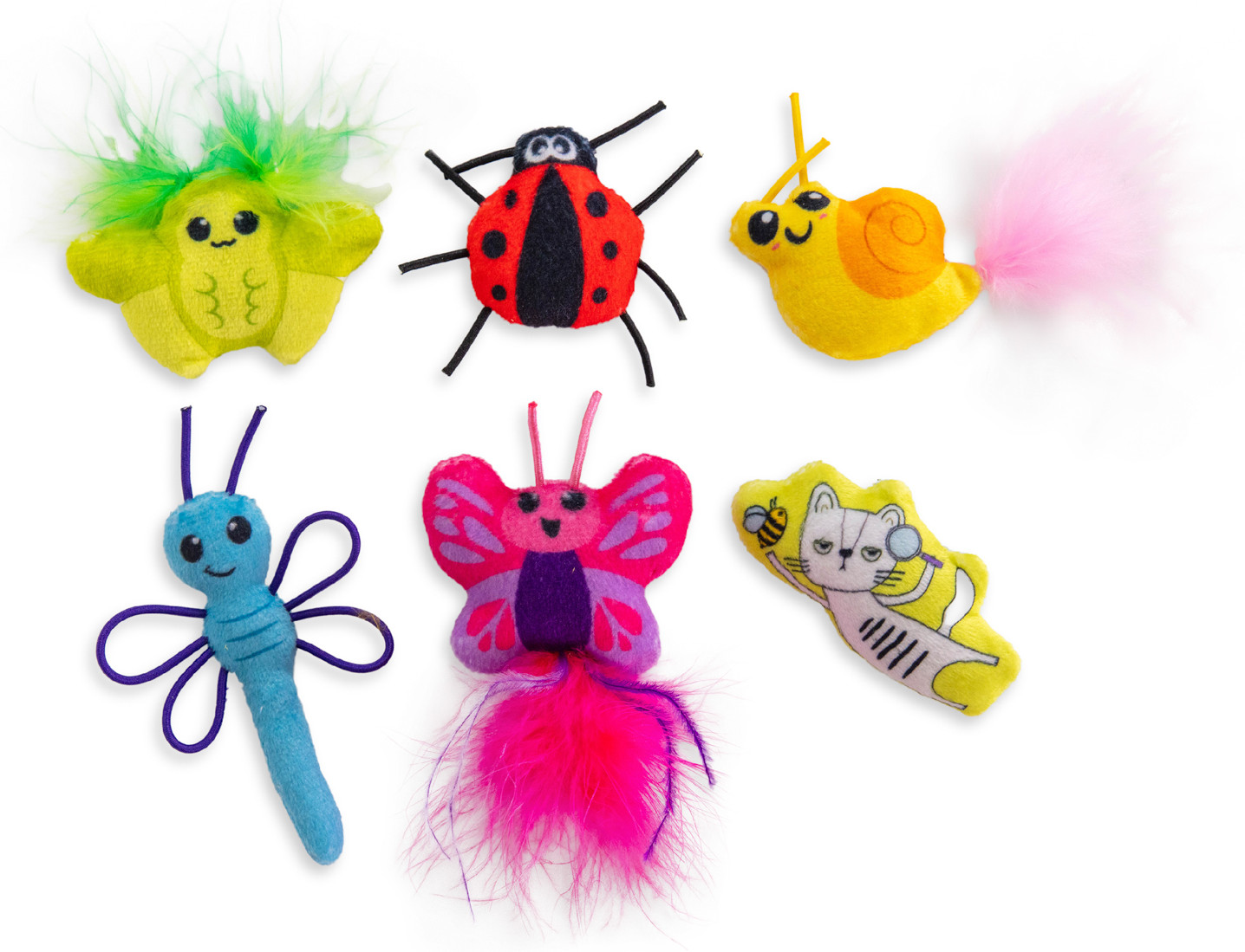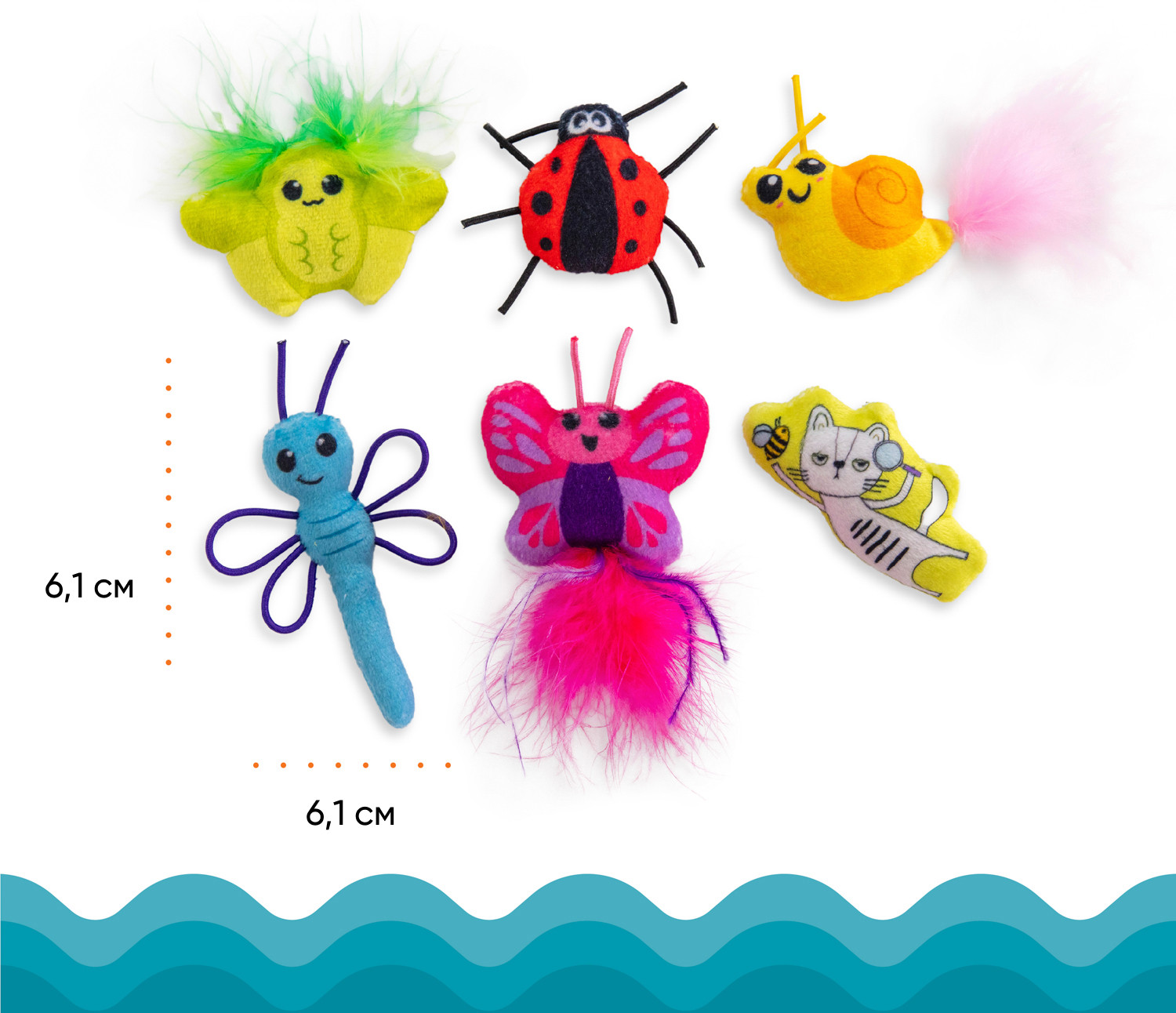 Игрушка Catstages Dental для кошек «Друзья — насекомые» представляет собой набор из шести забавных, ярких, разнофактурных игрушек, содержащих кошачью мяту. Перья, шуршащие элементы, различные текстуры ткани вносят разнообразие и поддерживают интерес, а также провоцируют питомца в процессе игры чувствовать себя настоящим диким охотником.