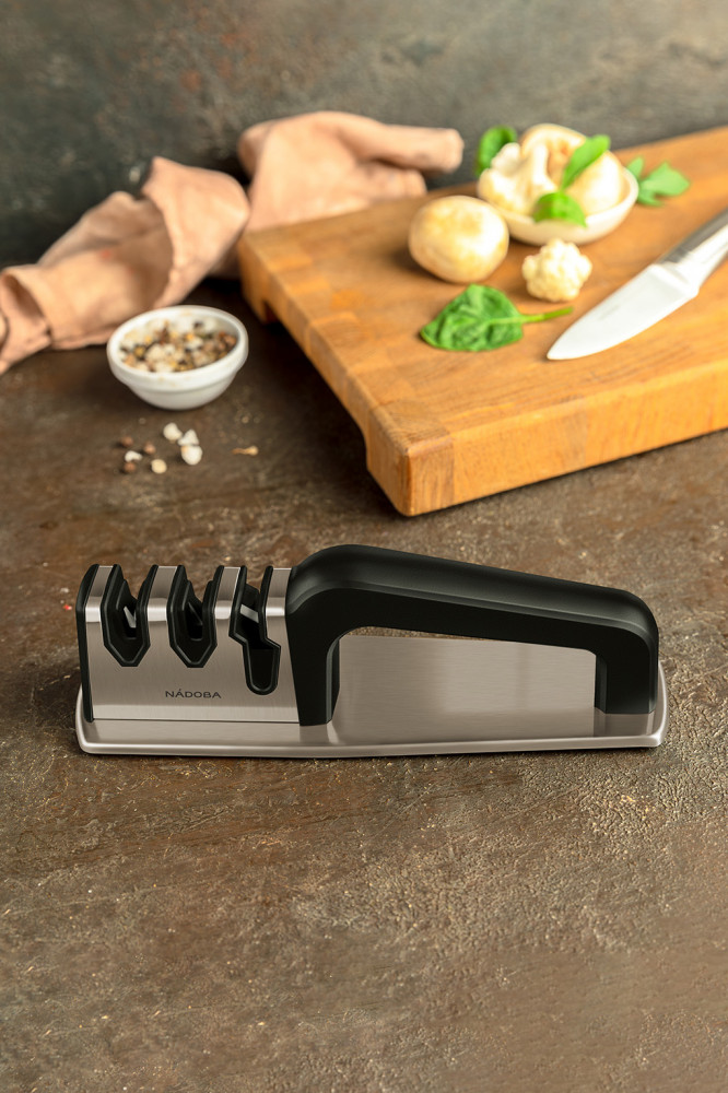 Nadoba Точилка для ножей и ножниц «Ember»новинка В данный момент этот товар отсутствует в продаже. Возможно, у нас найдется аналогичный или похожий товар здесь. Серия: Ember Корпус точилки для ножей и ножниц Nadoba серии Ember выполнен из стали и высококачественного ABS-пластика, обеспечивающие изделию стойкость к механическим воздействиям длительный срок эксплуатации. Изделие имеет 2 слота с различными элементами заточки. В целях безопасности и удобства изделие обладает нескользящим основанием, предотвращающее скольжение точилки во время работы с ней. Гарантия на точилку для ножей и ножниц Nadoba коллекции Ember 5 лет. |