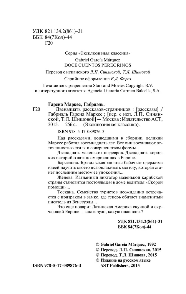 Серия: Эксклюзивная классика Над рассказами, вошедшими в сборник, великий Маркес работал восемнадцать лет. Все они восхищают отточенностью стиля и совершенством формы. |