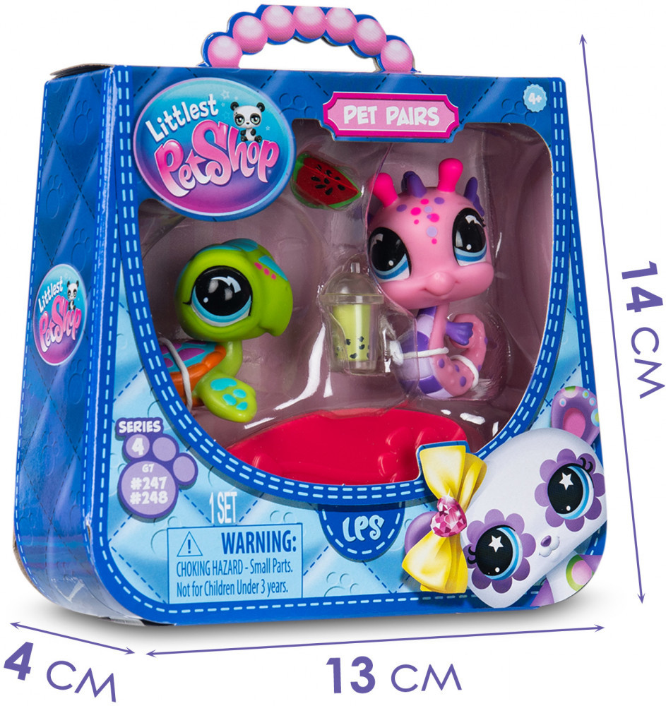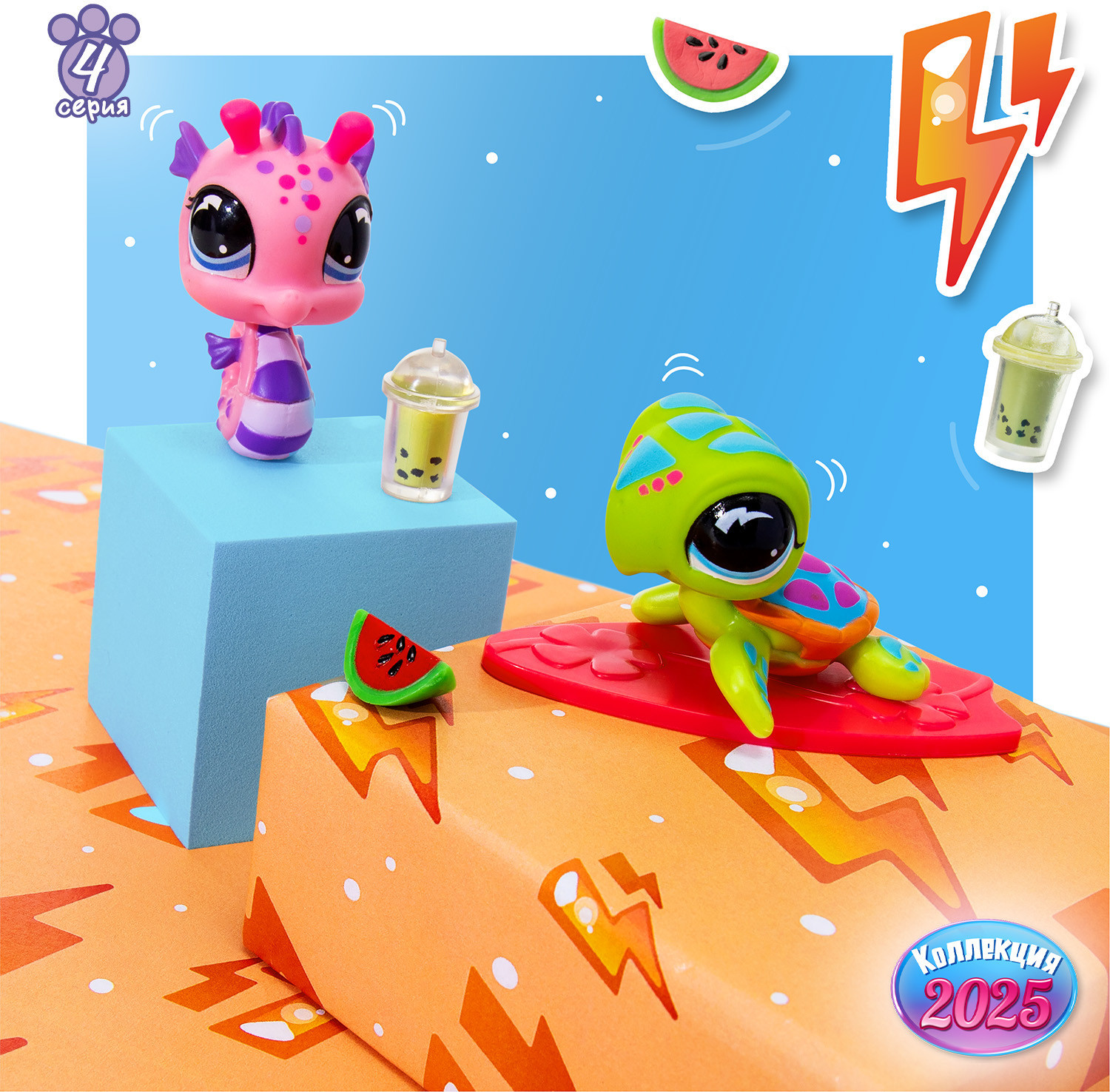 Пляжные приключения ждут Вас! Главные герои набора «Пара друзей» — забавная парочка: Морской конек и Черепашка с подвижными головами. Представьте себе Черепашку, ловко балансирующую на доске для серфинга, а недалеко от нее отдыхает Морской конек, который наслаждается кусочком сладкого арбуза. Завершает картину стаканчик освежающего бабл-ти — то, что нужно в жаркий летний день у пляжа. В набор также входит уникальная коллекционная карточка, где вы найдете интересную информацию об одном из питомцев. Оригинальные петы LPS имеют уникальную метку в виде аббревиатуры бренда, подобно тому, как в реальной жизни отмечены клеймом домашние животные из питомников. Этот комплект станет прекрасным дополнением к любой коллекции Littlest Pet Shop, а также подарит массу удовольствия в игре.