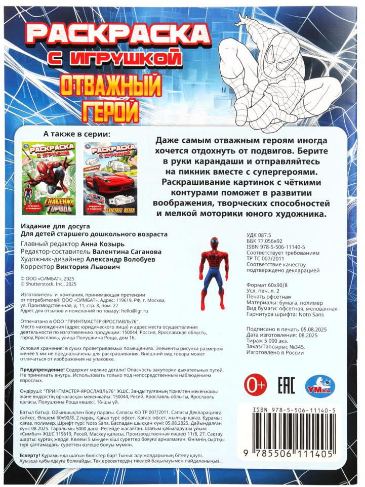 💳 Оплатить за товар можно при получении 🇰🇿 Есть бесплатная доставка по Казахстану 🎁 Копите бонусы с каждой покупки Раскраска с игрушкой «Отважный герой» ТМ «УМка» — отличный подарок для юных художников. Эта увлекательная раскраска про популярного супергероя непременно понравится вашему ребёнку. В ней он найдёт интересные картинки с чёткими контурами и сюжетными текстами к ним. Наличие фигурки в комплекте придаст занятиям с раскраской игровой момент. Данное издание станет отличным вариантом, чтобы взять его с собой в путешествие и скоротать время в дороге за раскрашиванием. |