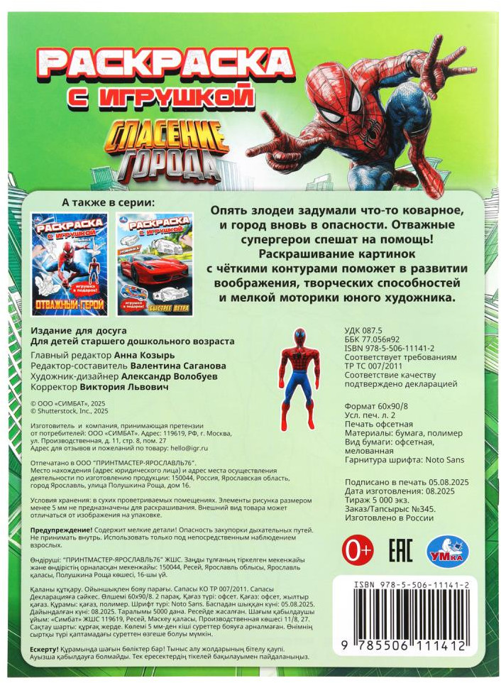 💳 Оплатить за товар можно при получении 🇰🇿 Есть бесплатная доставка по Казахстану 🎁 Копите бонусы с каждой покупки Раскраска с игрушкой «Спасение города» ТМ «УМка» — отличный подарок для юных художников. Эта увлекательная раскраска про популярного супергероя и его противостояние злодеям непременно понравится вашему ребёнку. В ней он найдёт интересные картинки с чёткими контурами и сюжетными текстами к ним. Наличие фигурки в комплекте придаст занятиям с раскраской игровой момент. Данное издание станет отличным вариантом, чтобы взять его с собой в путешествие и скоротать время в дороге за раскрашиванием. |