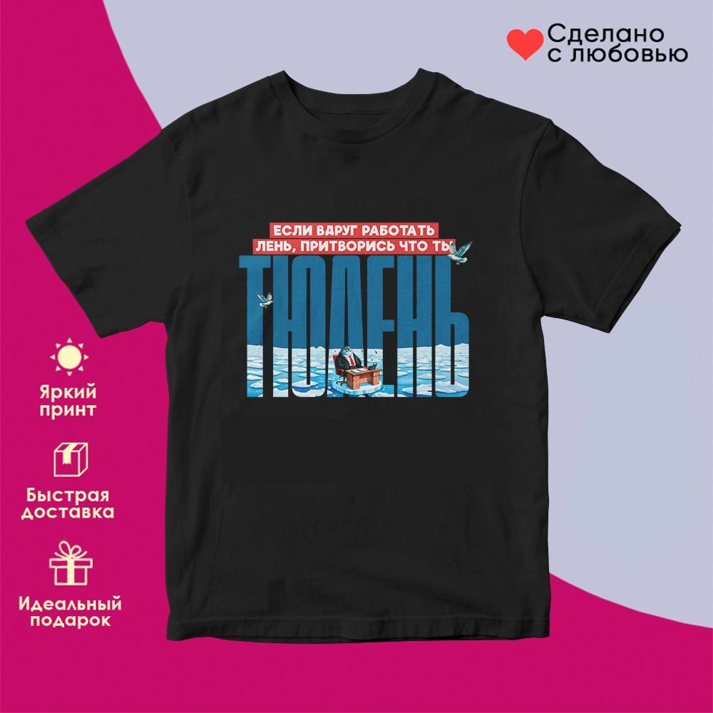 TopPoshiv Футболка с принтом «Если вруг работать лень притворись что ты тюлень»