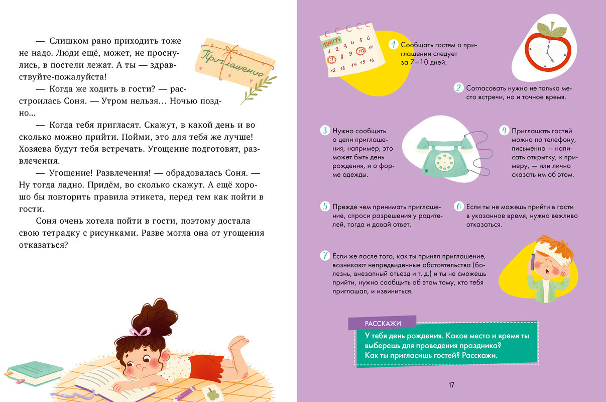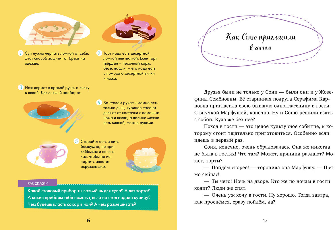 Серия: Детский этикет в сказках В этой книге собраны забавные и поучительные истории, которые помогут малышу: культурно вести себя за столом; пользоваться столовыми приборами; проявлять чувство такта дома и в гостях; готовиться к предстоящему визиту; прислушиваться к добрым и уместным советам. Однажды первобытная девочка Соня отправилась на прогулку вместе со своим мамонтёнком Лохматом. Вдруг налетела снежная буря и заморозила их, погрузив в глубокий сон. Так и проспали они до наших дней. За это время появилось множество новых вещей, а вместе с ними и правил поведения, о которых озорной Соне ещё только предстоит узнать. |