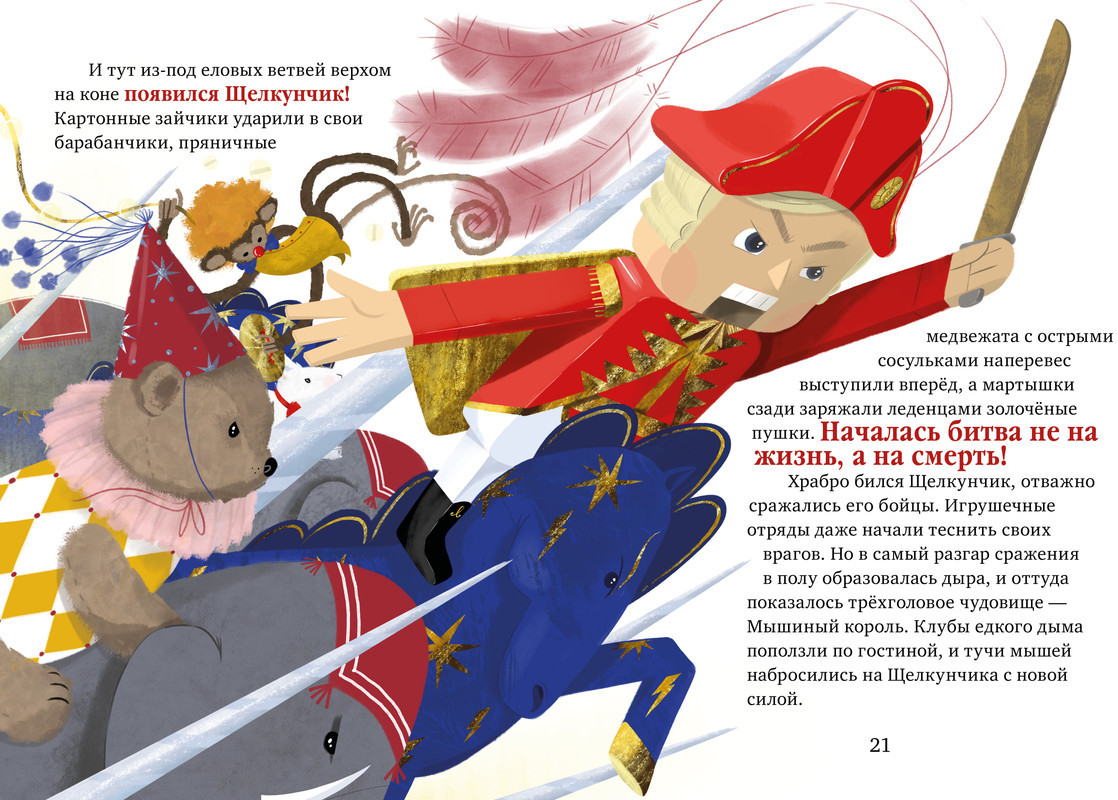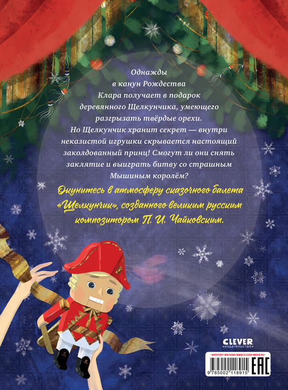 Серия: Книжки-картинки Книга «Щелкунчик» познакомит детей с театральной классикой. Она написана по мотивам либретто к балету великого русского композитора Петра Ильича Чайковского. Клара получает на Рождество игрушку — Щелкунчика, и в ее жизнь приходит волшебство. Щелкунчик оказывается не просто детской игрушкой для колки орехов, он — заколдованный принц! Смогут ли ожившие игрушки победить войско страшного мышиного короля? Сможет ли Клара расколдовать Щелкунчика? |