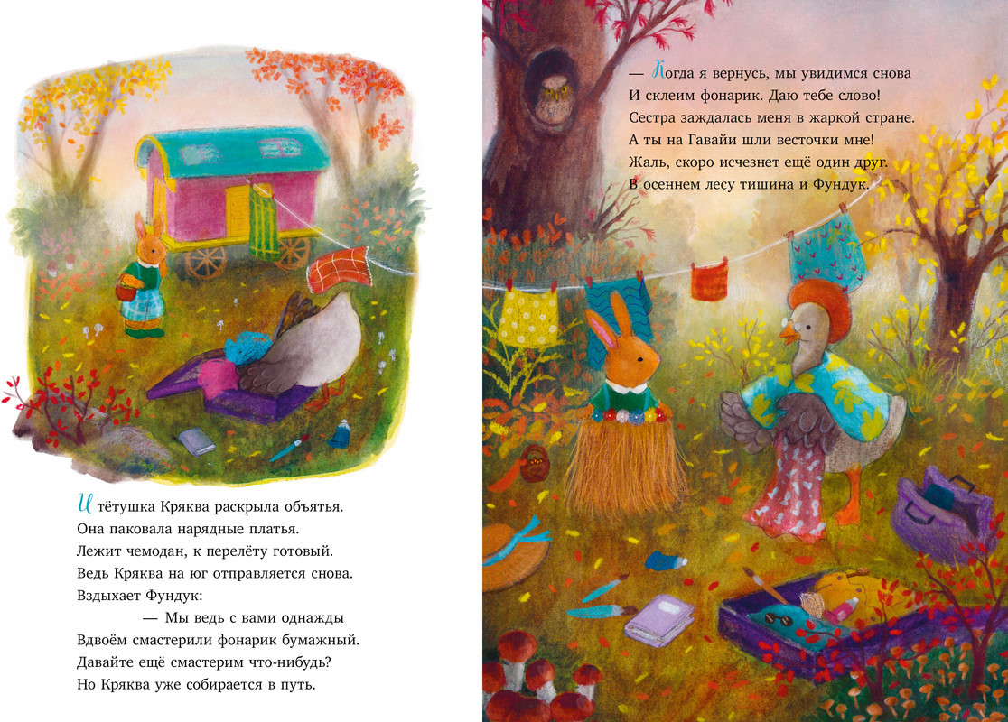 Серия: Сказки старого леса Добрая книжка с прелестными иллюстрациями «Фундук и добрая осень» приглашает маленьких читателей в сказочный лес. Наступила осень, и маленький крольчишка Фундук загрустил: Черепашка укладывается спать, а тетушка Кряква отправится в путешествие на зимовку. Но оказывается, что грустить незачем, ведь осень приготовила много ярких впечатлений и приятных подарков. |