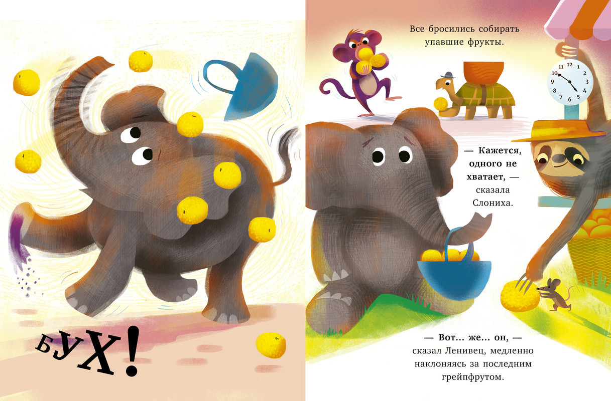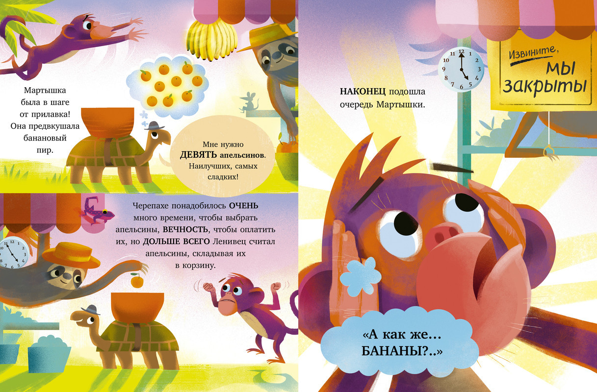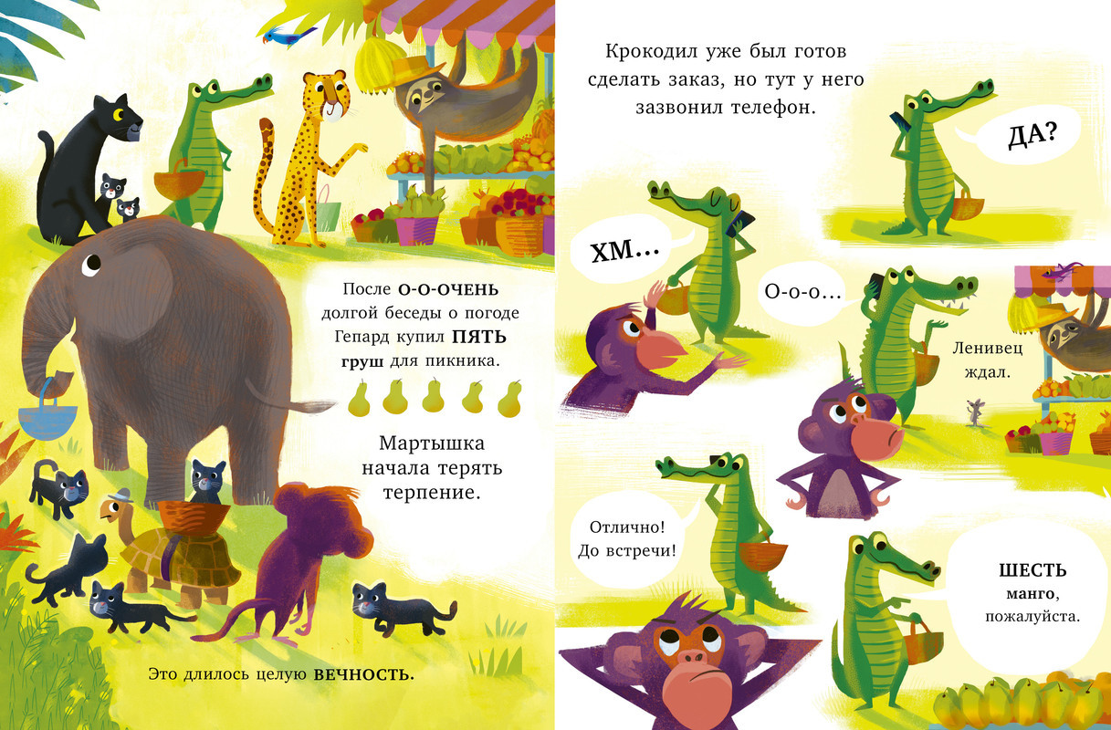 Серия: Книжки-картинки Сегодня во фруктовой лавке ленивца огромная очередь! Жители джунглей пришли за покупками, мечтая купить ОДНУ папайю, ДВА ананаса, ТРИ лимона и много-много других угощений. Успеет ли обезьянка купить ДЕСЯТЬ бананов? |