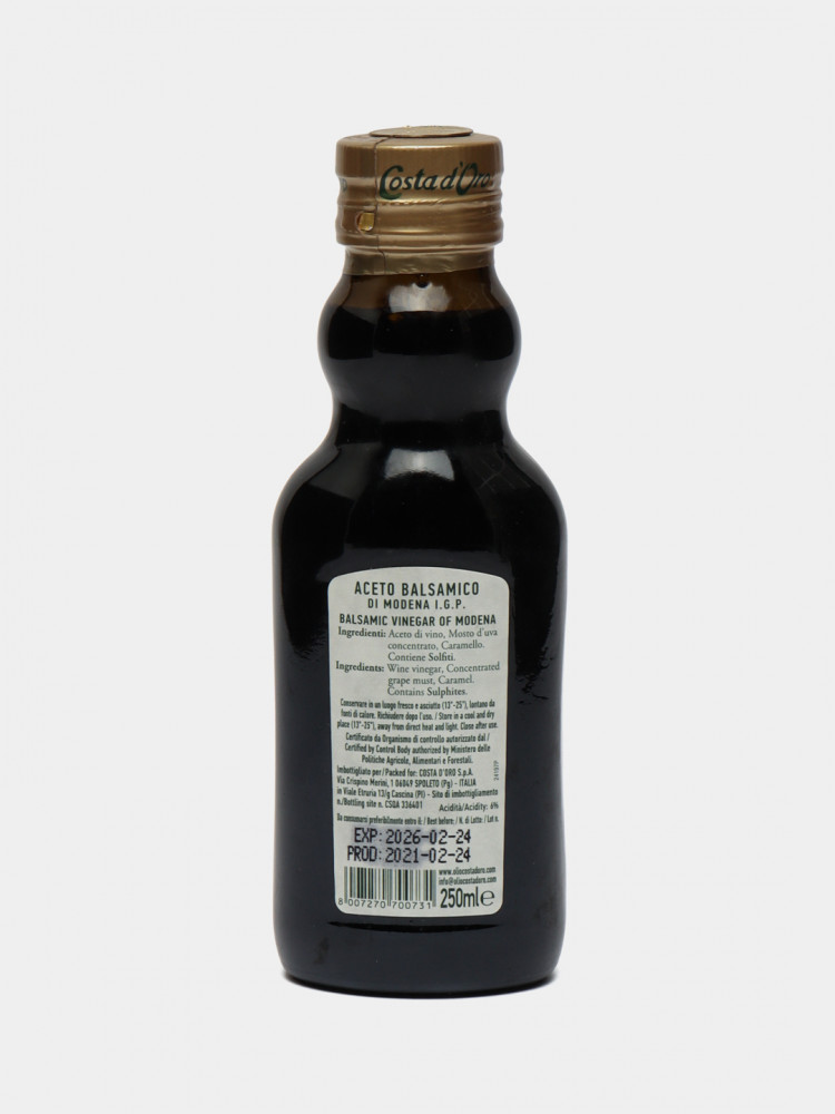 Бальзамический уксус Costa d’Oro потрясающе сочетается с сыром пармезан и клубникой, овощными и фруктовыми салатами, грибным супом, может быть прекрасным дополнением к мороженому и ягодам или кремовым десертам. Также отлично подойдет к телятине, ризотто, блюдам из морепродуктов.