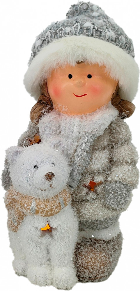 Наша зимняя декоративная фигурка с подсветкой в виде девочки с медвежонком станет очаровательным украшением вашего дома. Мягкий свет LED-лампочек подчеркнет детали и создаст неповторимую праздничную атмосферу. Работает от 2 элементов питания LR44 (входят в комплект). |