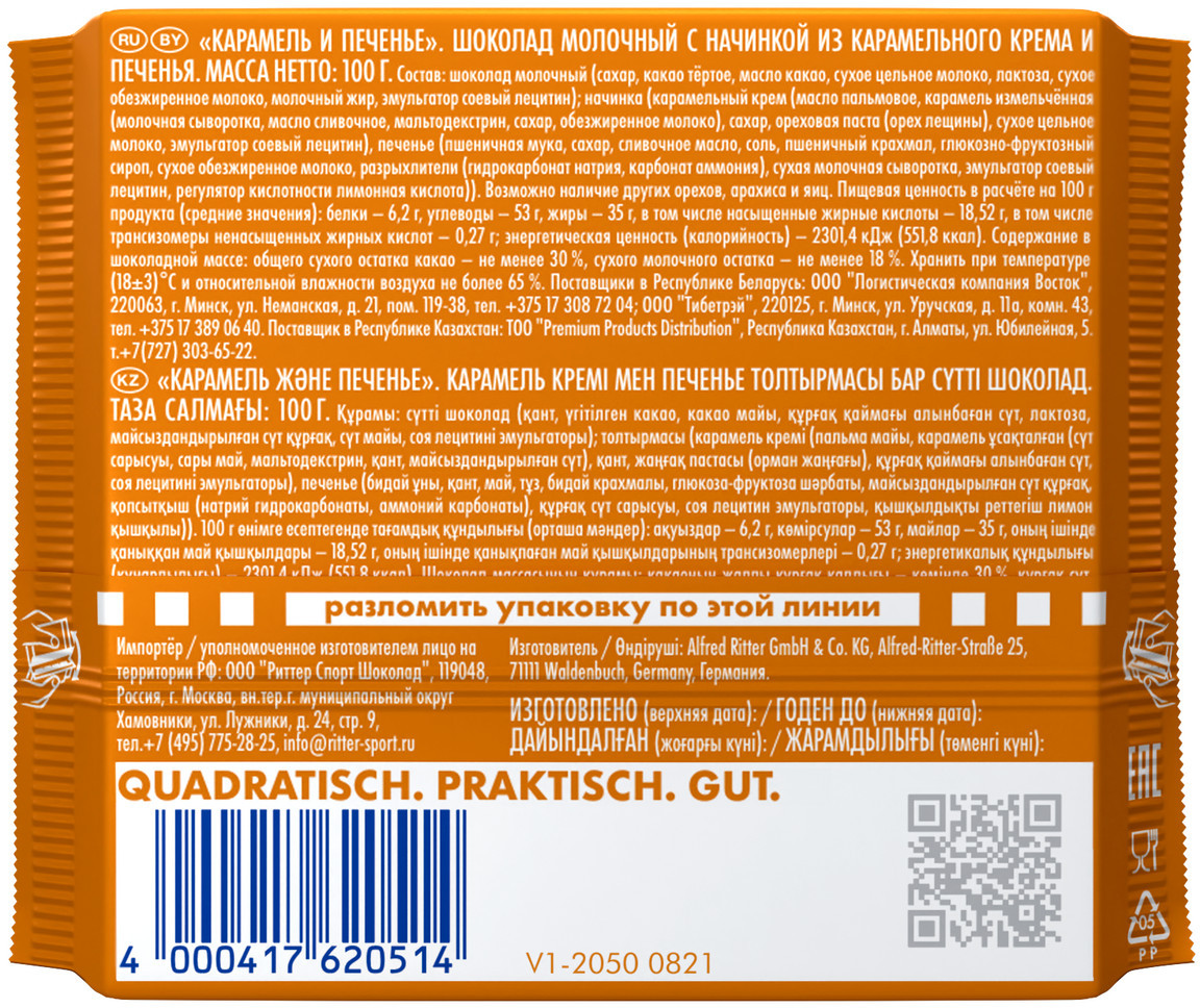 Ritter Sport Шоколад молочный «Карамель и печенье»