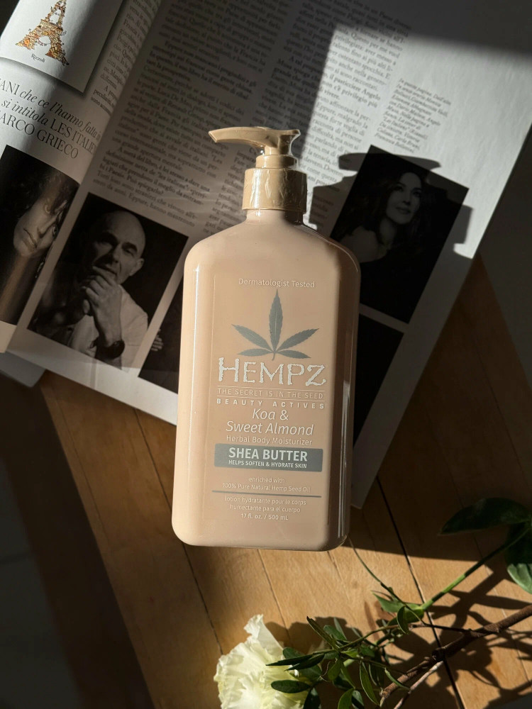 Water/Aqua/Eau, Isopropyl Palmitate, Butylene Glycol, Propanediol, Glycerin, Butyrospermum Parkii (Shea) Butter, Dimethicone, Sorbitan Stearate, Stearic Acid, Glyceryl Stearate, PEG-100 Stearate, Cannabis Sativa Seed Oil, Prunus Amygdalus Dulcis (Sweet Almond) Oil, Theobroma Cacao (Cocoa) Seed Butter, Helianthus Annuus (Sunflower) Seed Oil, Cocos Nucifera (Coconut) Oil, Mangifera Indica (Mango) Seed Butter, Persea Gratissima (Avocado) Oil, Aloe Barbadensis Leaf Juice, Helianthus Annuus (Sunflower) Seed Extract, Persea Gratissima (Avocado) Fruit Extract, Prunus Amygdalus Dulcis (Sweet Almond) Seed Extract, Cocos Nucifera (Coconut) Fruit Extract, Phenoxyethanol, Fragrance (Parfum), Cetyl Alcohol, Polysorbate 40, Nylon-12, Carbomer, Chlorphenesin, Ethylhexylglycerin, Aminomethyl Propanol, Disodium EDTA, Linalool, Benzyl Alcohol, Coumarin, Benzyl Benzoate, Benzyl Salicylate, Tocopherol, Tocopheryl Acetate, Ascorbic Acid, Retinyl Palmitate, Citric Acid, Potassium Sorbate, Sodium Benzoate.