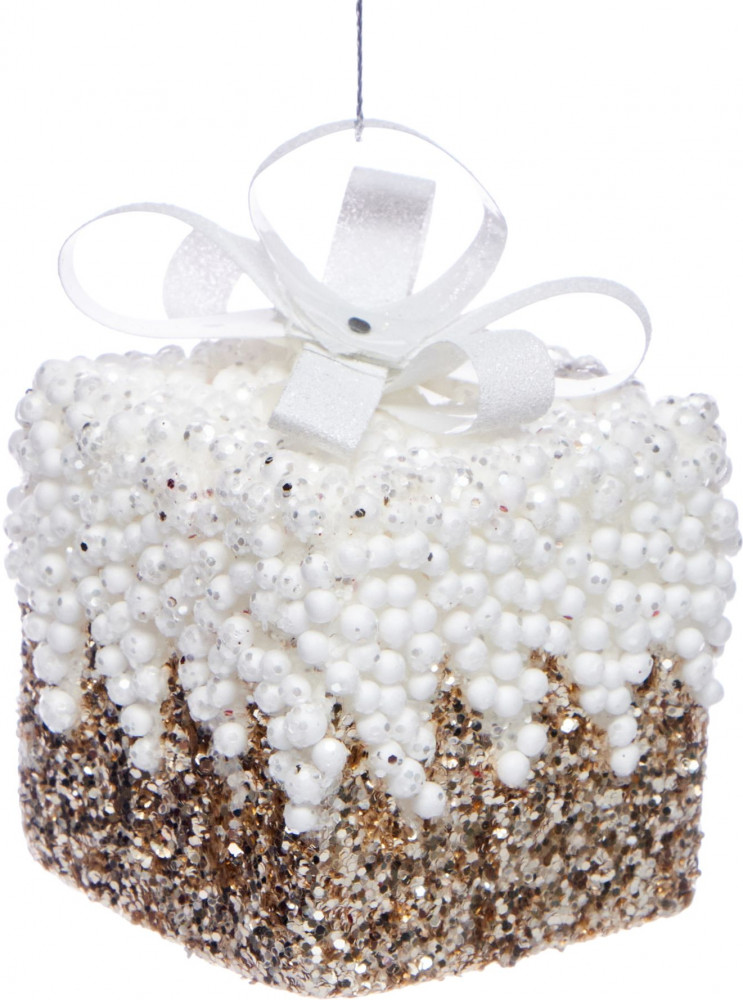 Эта легкая, как пушинка, елочная игрушка из пенопласта с блестками невероятно нежная и воздушная. Она добавит в ваш новогодний декор ощущение волшебства. Выполнена в форме подарка. |