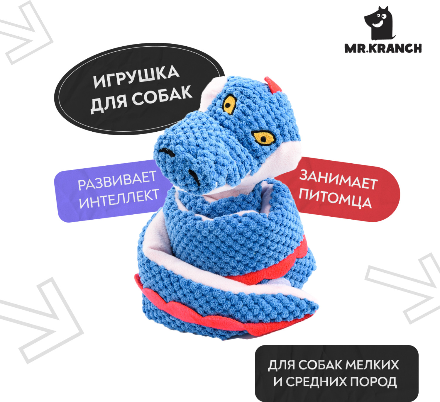 Mr.Kranch Игрушка для собак с карманами под лакомство «Змейка»
