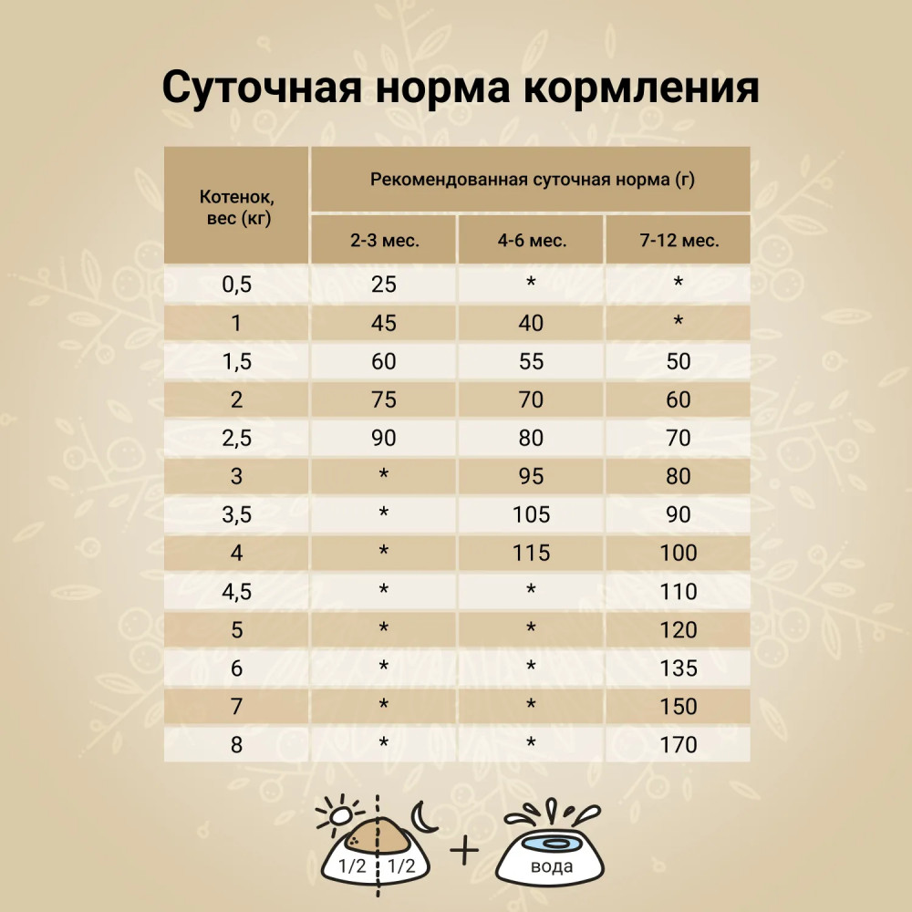 • функциональные добавки — Омега-6 и Омега-3. Жирные кислоты помогают поддерживать здоровье кожи и шерсти, играют важную роль в поддержании здоровья сердечно-сосудистой системы, обладают противовоспалительными свойствами;