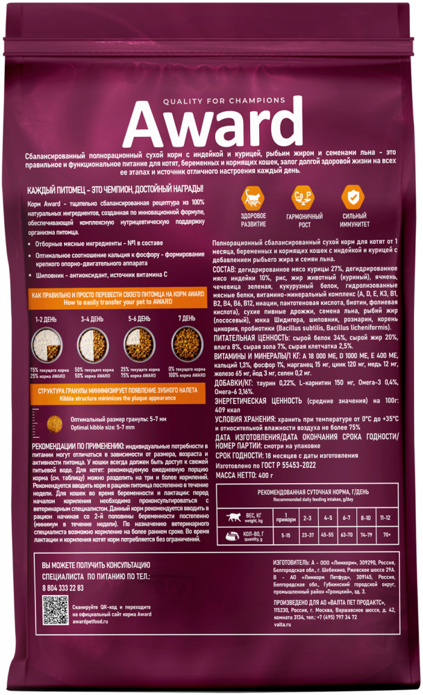 Award Корм для котят с индейкой и курицей «Healthy growth»