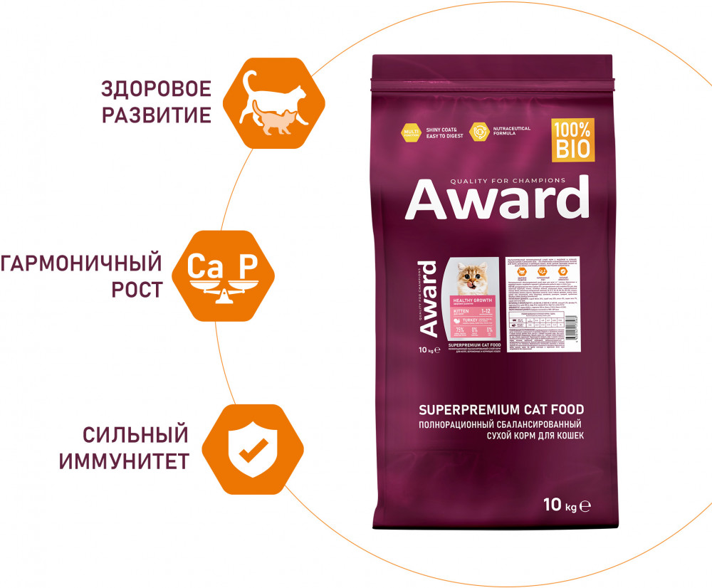 Award Корм для котят с индейкой и курицей «Healthy growth»