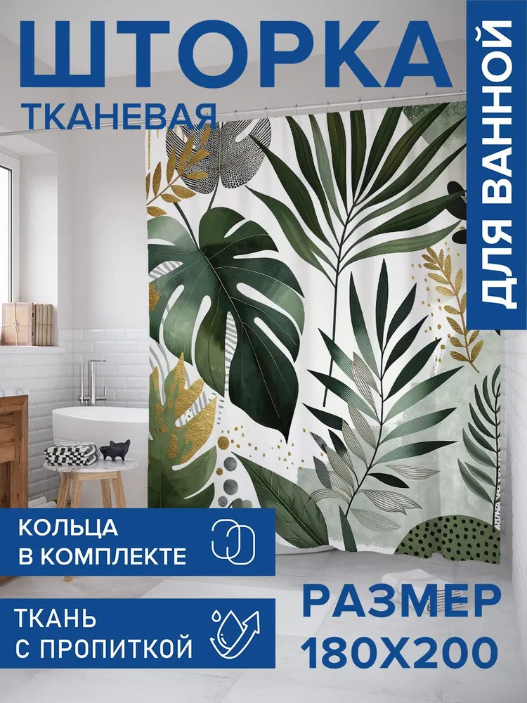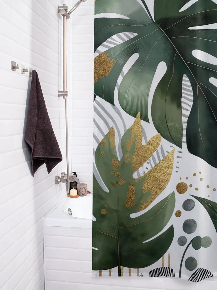 Серия: Листья в золоте Занавеска для ванной комнаты с 3D эффектом стильное дополнение для любого интерьера. Водоотталкивающая пропитка защитит вашу мебель от влаги и брызг, сохраняя полы сухими. Мягкая и приятная на ощупь ткань из сатена (100% полиэстер) плотностью 80 г/м2 легко расправляется под собственным весом, не прилипает и не мнется, избавляя вас от необходимости использовать утяжелители и магниты. Стойкий и утонченный принт, нанесенный сублимационной печатью, останется ярким даже при контакте с водой, паром и после множества стирок. Отверстия для крючков надежно обработаны оверлоком для долговечности. |