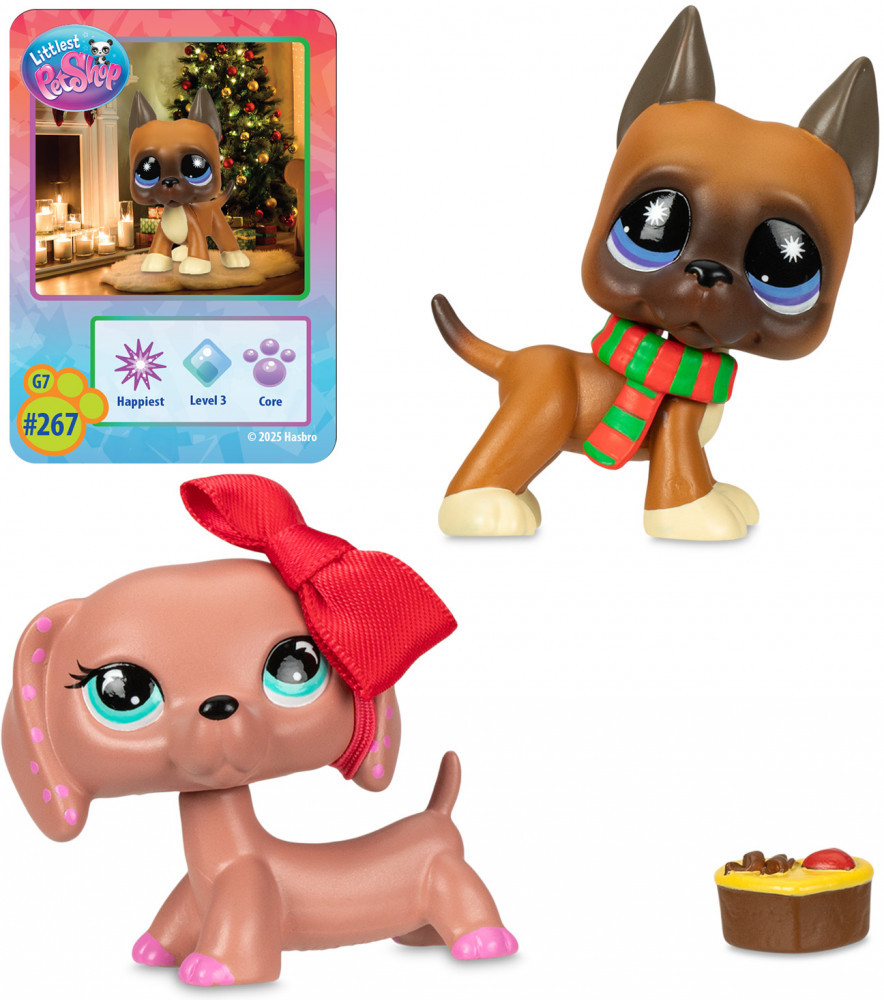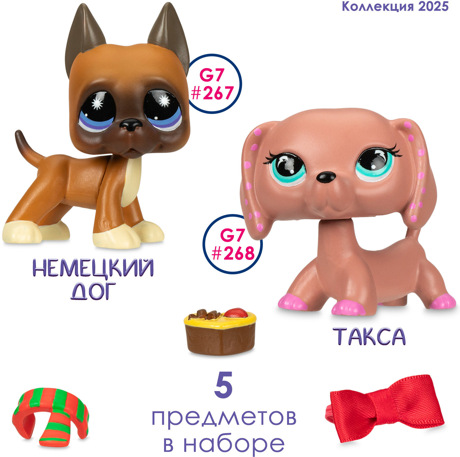 Встречайте новую коллекцию игрушек LPS 2025 года (коллекционный идентификатор — 2025, серия 4). Подготовьтесь встречать Рождество вместе с новыми приятелями! Главные герои набора «Праздники» — очаровательные Немецкий дог и Такса с подвижными головами. Они рады пригласить вас провести зимний вечер в теплой атмосфере праздника. Немецкого дога украшает мягкий шарфик, аккуратный ободок с бантом надет на голову жизнерадостной Таксы, а ароматный кексик ждет гостей на столе. В набор также входит уникальная коллекционная карточка, где вы найдете интересную информацию об одном из питомцев.