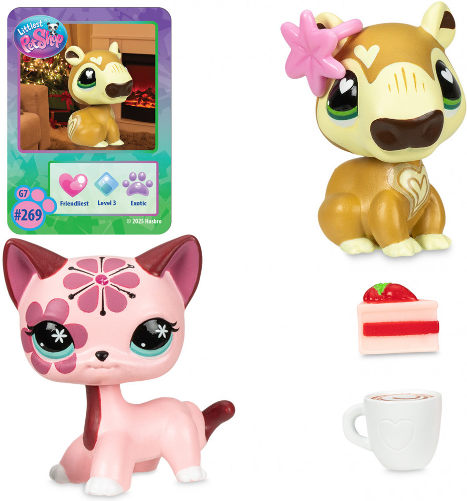 Встречайте новую коллекцию игрушек LPS 2025 года (коллекционный идентификатор — 2025, серия 4). Подготовьтесь встречать Рождество вместе с новыми приятелями! Главные герои набора «Праздники» — прелестные Капибара и Короткошерстная кошка (стоячка) с подвижными головами. Они подготовили для вас традиционные праздничные лакомства: горячий кофе в удобной кружке, аппетитный кусочек праздничного торта, а в подарок — милую заколку в виде цветка. В набор также входит уникальная коллекционная карточка, где вы найдете интересную информацию об одном из питомцев.