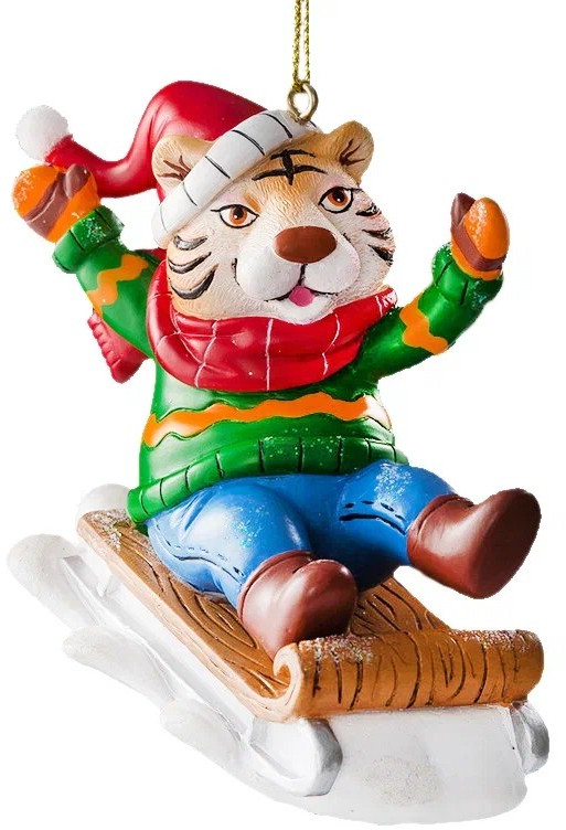 Серия: Клубная вечеринка Крайне милый тигренок катается на санках. Уникальный персонаж, специально разработанный командой дизайнеров, отличается яркими праздничными цветами и обилием интересных, тонко проработанных деталей. Изделие является относительно тяжелым, предпочтительно использование на искусственной елке или в качестве сувенира. |