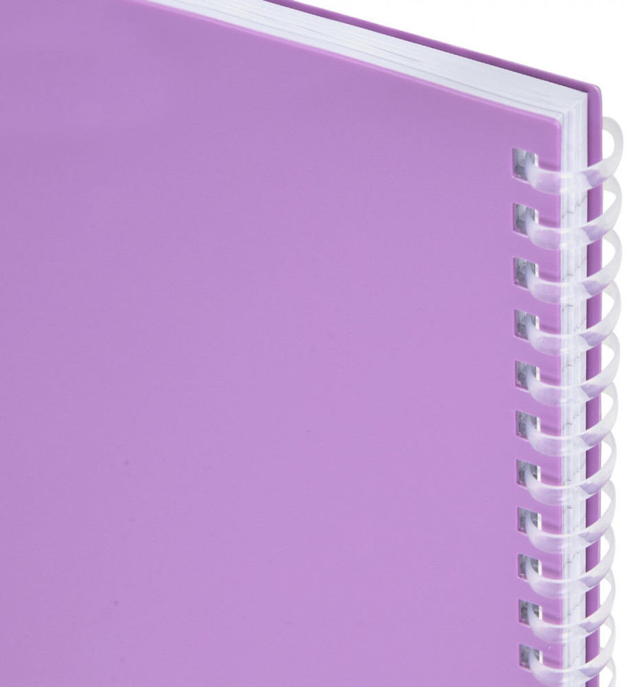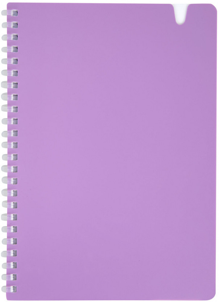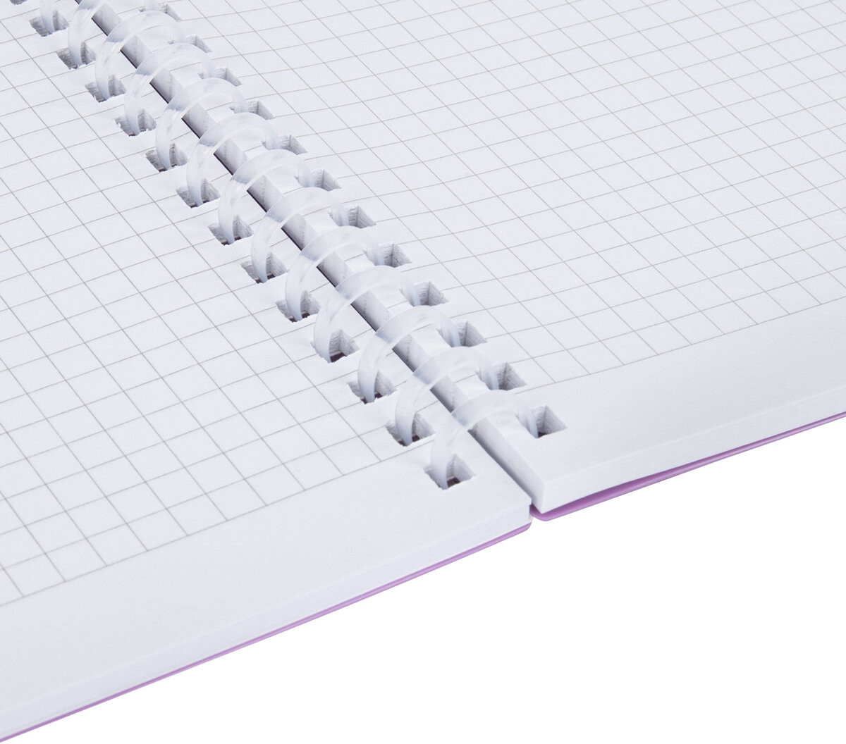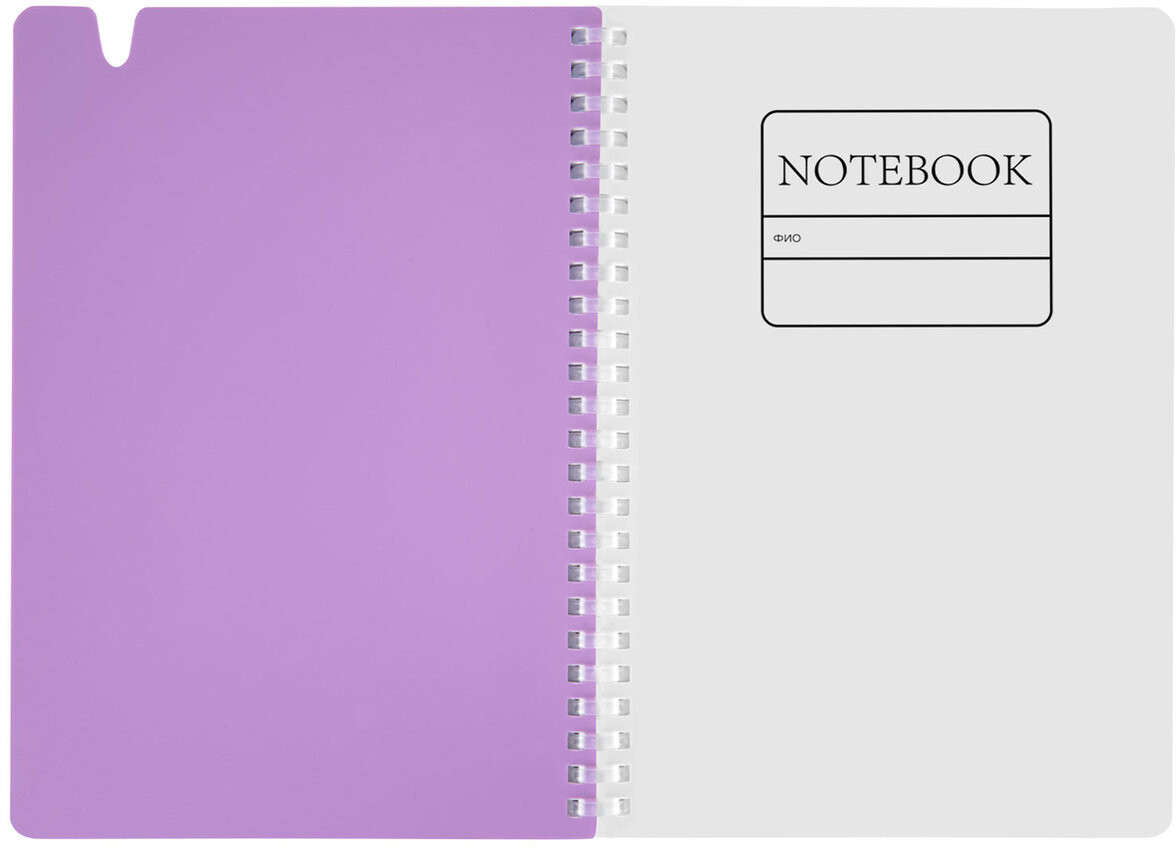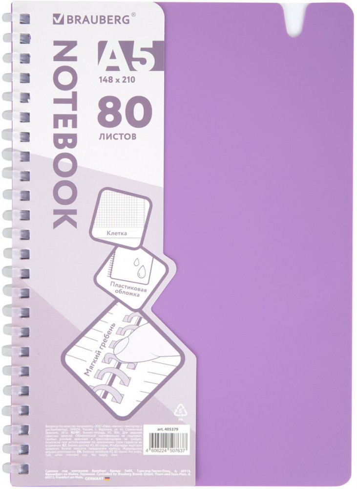 Прочная пластиковая обложка надежно защищает внутренний блок от повреждений и влаги, продлевая срок службы тетради. Обложка тетради оснащена специальной вырубкой для удобного крепления ручки. Внутри — 80 листов высококачественной офсетной бумаги плотностью 70 г/м2 и белизной 100%, обеспечивающей комфортное письмо. Удобная линовка в клетку с полями помогает вести структурированные записи. Листы скреплены мягким силиконовым гребнем, что обеспечивает удобство использования тетради и комфорт при письме. Тетрадь формата А5 — это удобное и практичное решение для учебы, работы и повседневных заметок. Она компактна, легко помещается в сумку или рюкзак, но при этом вместительна для удобного письма.