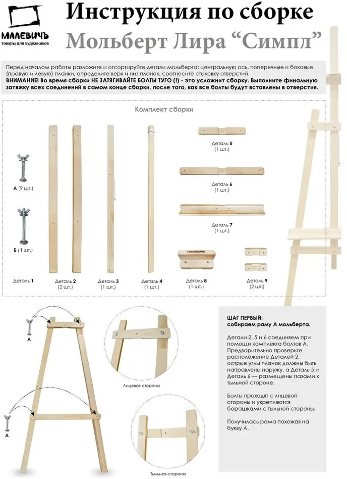 Мольберт для рисования напольный разборный «Симпл» | Лира | МалевичЪ