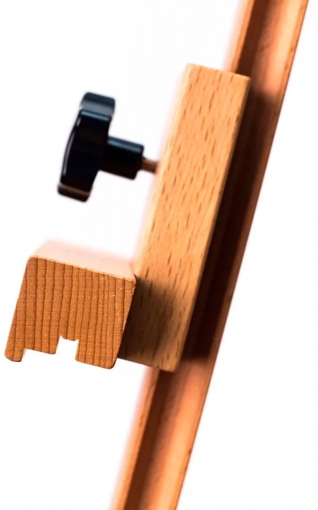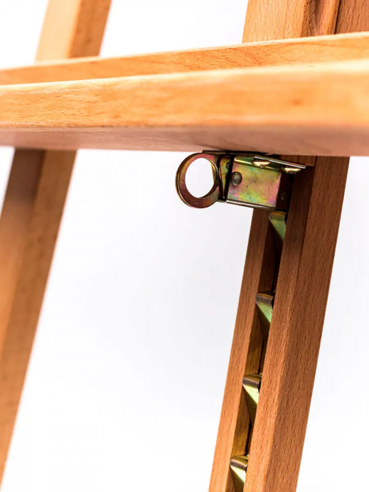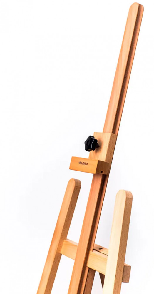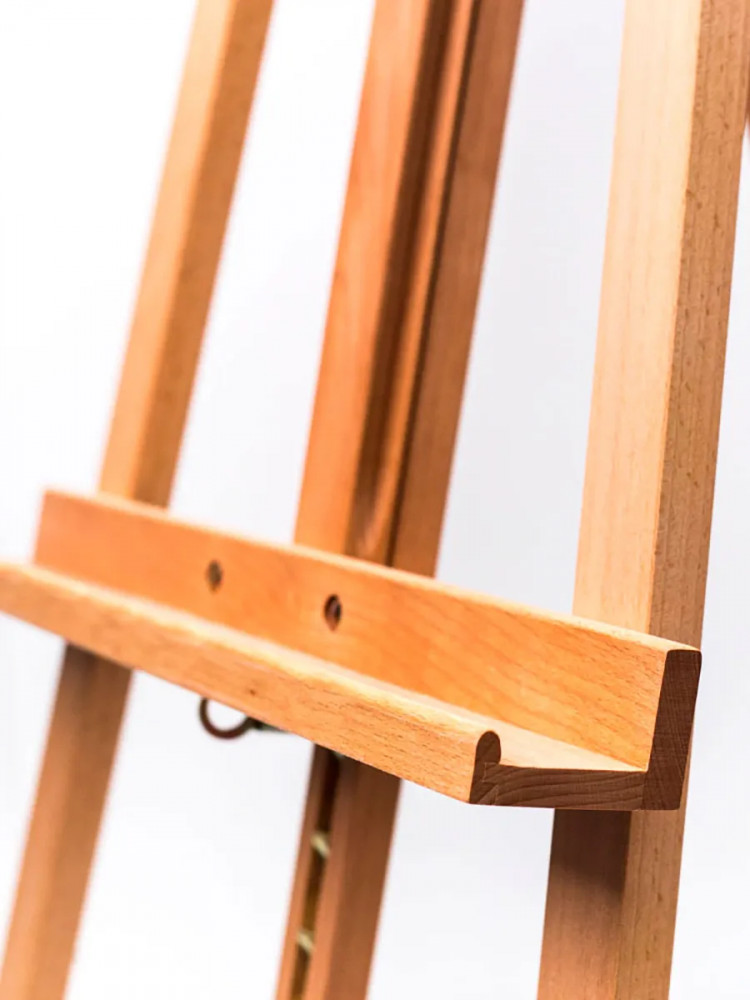 Мольберт «Лира» классической конструкции, выполнен из промасленного бука, высота от 145 до 195 см. Положение нижней полки можно легко менять с помощью специального реечного механизма. Работать можно как сидя, так и стоя. Идеален для работы на холстах среднего размера (максимальная высота холста 110 см). Благодаря прочности и небольшому весу (3.7 кг), мольберт подходит для детского творчества, на нем не возникают занозы, мольберт гипоаллергенен и безопасен для маленьких художников.