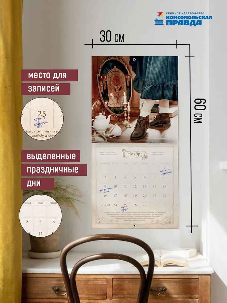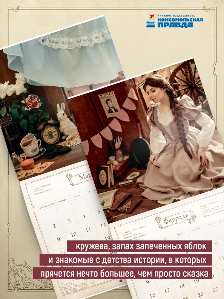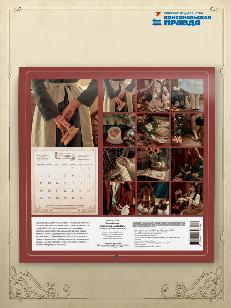 Кружева, запах запечённых яблок и знакомые с детства истории, в которых прячется нечто большее, чем просто сказка. Всё это настроение года, воплощенное в винтажных образах и продуманное до мельчайших деталей. Теплая рукотворность и узнаваемые сюжеты в календаре от Дарьи Левиной, автора бестселлеров «Книга вдохновения» и «Романтика дачи», превращают каждый месяц в волшебное пространство, в котором хочется задержаться подольше. |