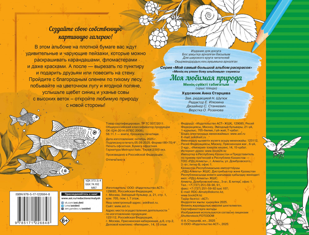 Серия: Волшебный чемоданчик с пазлами Создайте свою собственную картинную галерею! В этом альбоме на плотной бумаге вас ждут удивительные и чарующие пейзажи, которые можно раскрашивать карандашами, фломастерами и даже красками. А после — вырезать по пунктиру и подарить друзьям или повесить на стену. Пройдите с благородным оленем по тихому лесу, побывайте на цветочном лугу и ягодной поляне, услышьте щебет синиц и уханье совы с высоких веток — откройте любимую природу с новой стороны! |