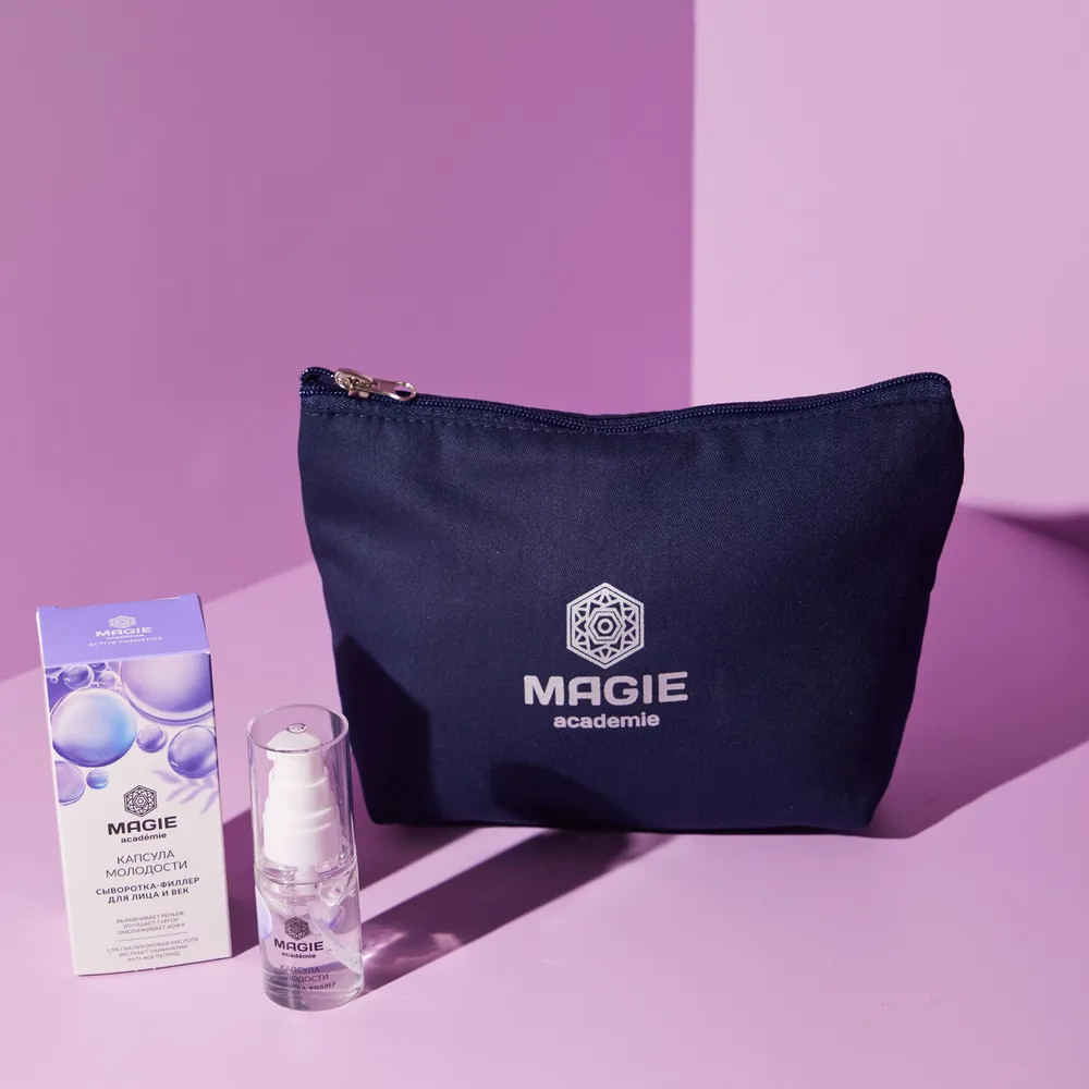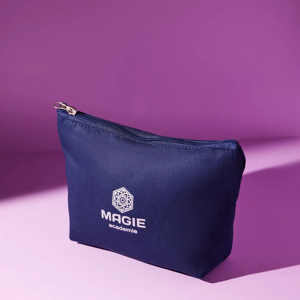 Косметичка Magie Academie — это идеальное сочетание элегантного минимализма и продуманной практичности. Она станет незаменимым аксессуаром для каждой женщины, заботящейся о своей красоте и порядке. Мягкая дополнительная прослойка из поролона надёжно защищает содержимое от ударов, предотвращая разбитые флаконы и треснутые корпуса декоративной косметики. Подкладка из плотной бязи (100% хлопок) отличается прочностью и долговечностью, не застревает в молнии и не расползается на волокна, в отличие от дешёвых аналогов. Размер косметички позволяет удобно хранить как декоративную косметику, так и уходовые средства — кремы, сыворотки, тоники Magie Academie. Лаконичный и элегантный дизайн делает её отличным подарком для каждой женщины, особенно в сочетании с фирменной тёмно-синей повязкой или шоппе бренда.
