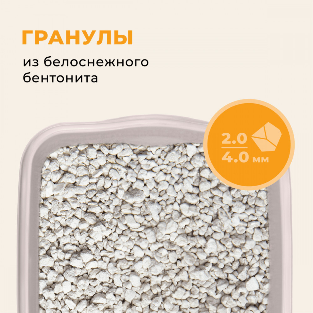 Натуральный наполнитель из белоснежного бентонита полностью безопасен для питомца и окружающей среды.