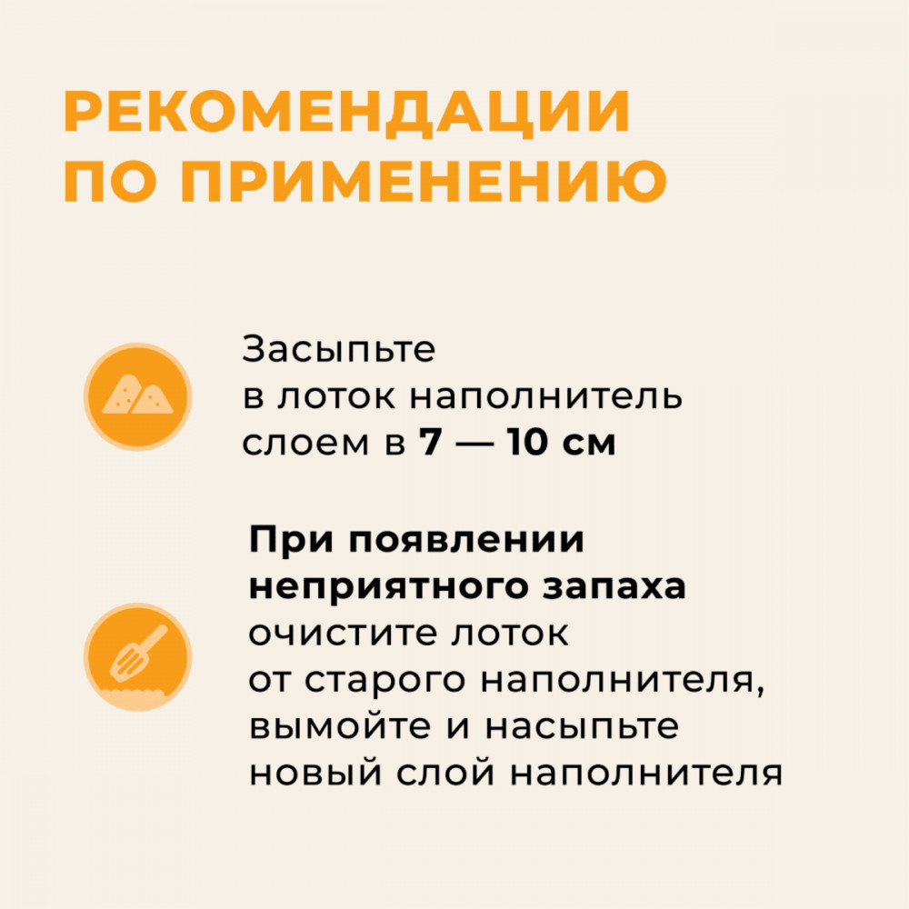 Как использовать: заполните лоток наполнителем на 7-10 см. Удаляйте комки по мере появления. При появлении неприятного запаха полностью очистите лоток, промойте, высушите и засыпьте новым слоем наполнителя.