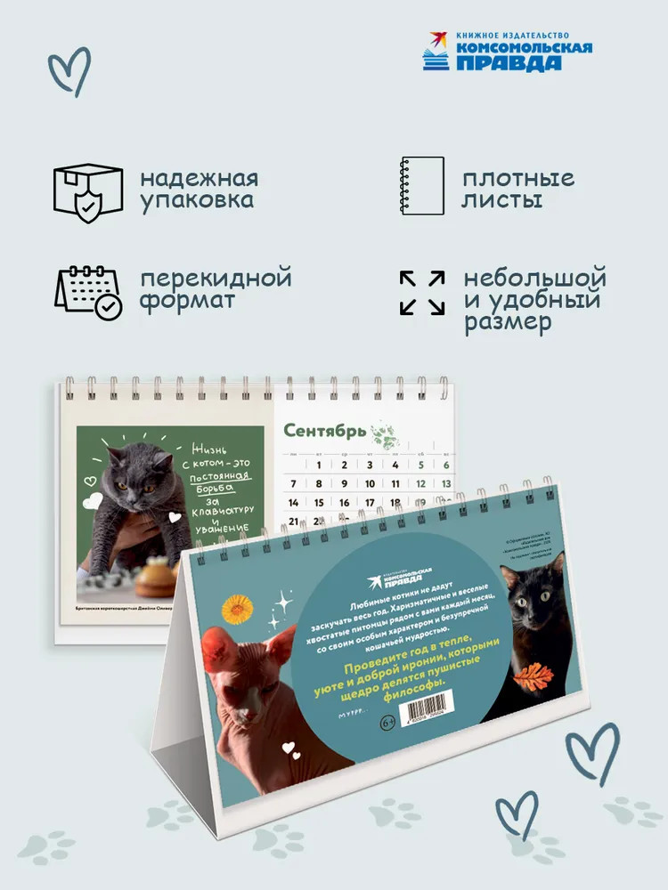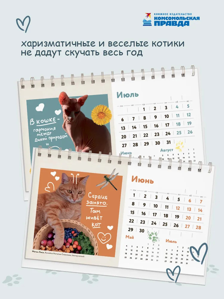 Календарь с любимыми питомцами топ-авторов издательства «Комсомольская правда». Каждый с особым характером и безупречной кошачьей мудростью на месяц. Любимые котики не дадут заскучать весь год. Харизматичные и веселые хвостатые питомцы рядом с вами каждый месяц со своим особым характером и безупречной кошачьей мудростью. Проведите год в тепле, уюте и доброй иронии, которыми щедро делятся пушистые философы. |