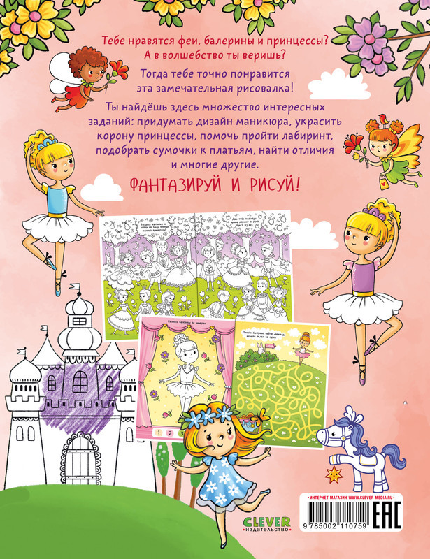 Серия: Рисуем и играем Тебе нравятся феи, балерины и принцессы? А в волшебство ты веришь? Тогда тебе точно понравится эта замечательная рисовалка! Ты найдешь здесь множество интересных заданий: придумать дизайн маникюра, украсить корону принцессы, помочь пройти лабиринт, подобрать сумочки к платьям, найти отличия и многие другие. Фантазируй и рисуй! Раскраска идеально подойдет для самостоятельных занятий. Покажите ребенку, как пользоваться тетрадкой, приготовьте набор карандашей или фломастеров разных цветов, обязательно хвалите за старания. |