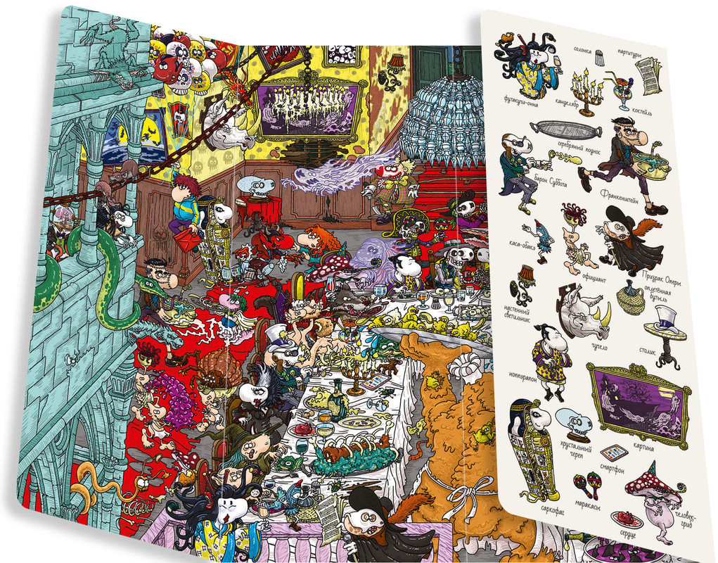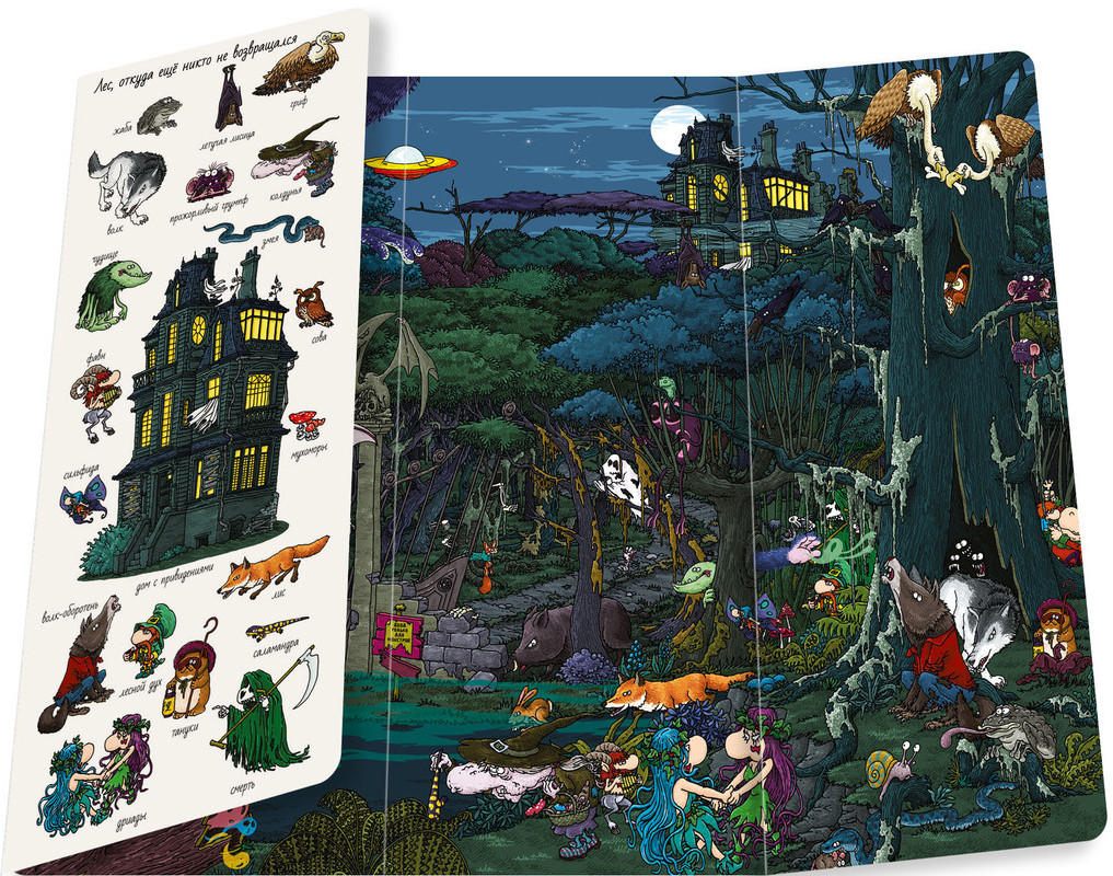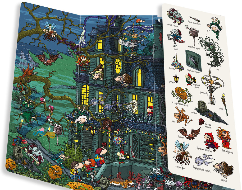Серия: Найди и покажи Найди на панорамных картинках персонажей, животных и предметы, которые изображены на створках каждой страницы. Трое друзей попали в неприятную историю в дремучем лесу у них сломалась машина. Им пришлось постучаться в двери странного дома. Оказавшись внутри, они в ужасе шарахаются от жутких монстров и призраков, в чьё логово они случайно попали! Хочешь поискать чудовищ на страницах этой книжки? |