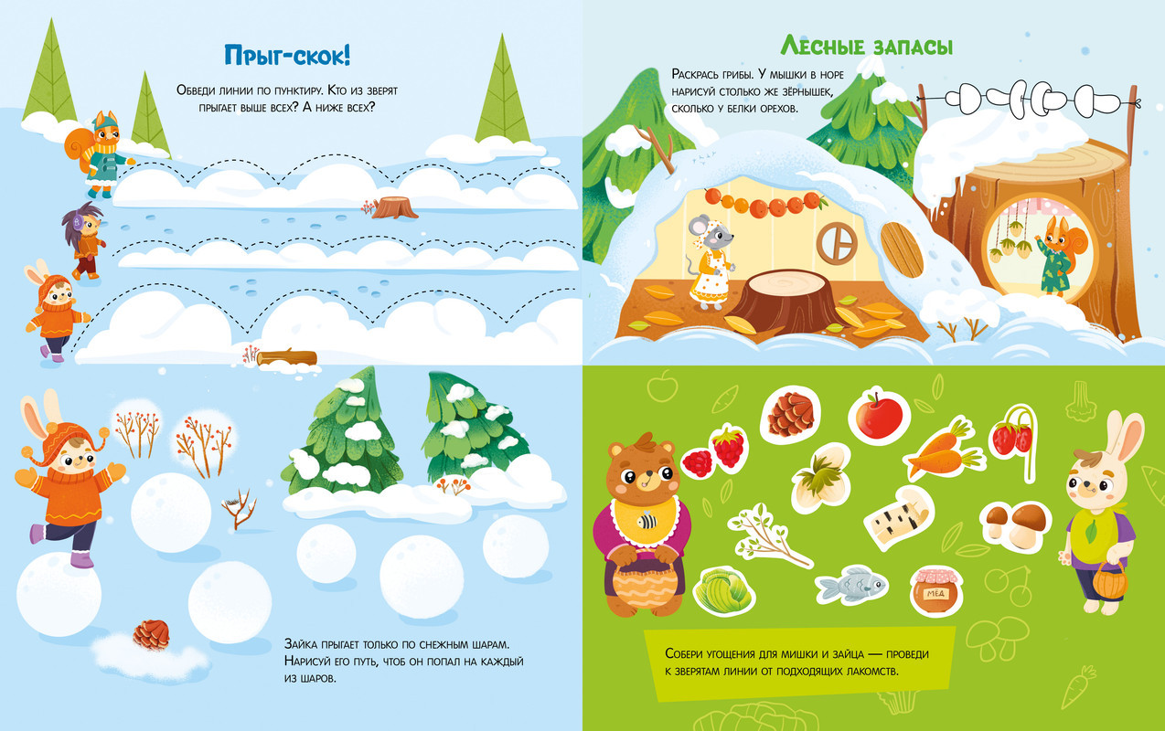 💳 Оплатить за товар можно при получении 🇰🇿 Есть бесплатная доставка по Казахстану 🎁 Копите бонусы с каждой покупки С этой лесной новогодней занимашкой точно не придётся скучать! Внутри вас ждут множество заданий на логику, внимание и сообразительность, смешные рисовалки, лабиринты и задачки. посчитайте лесных зверей, сосчитайте снежинки и помогите зайчику найти дорогу в запутанном лабиринте. Наслаждайтесь новогодними заданиями, играйте все вместе! |