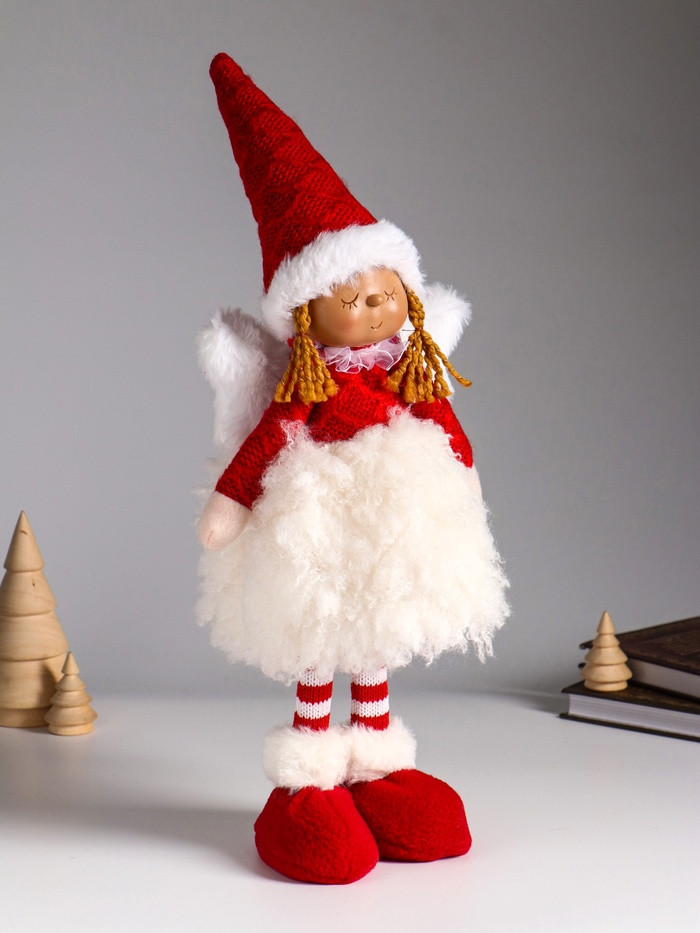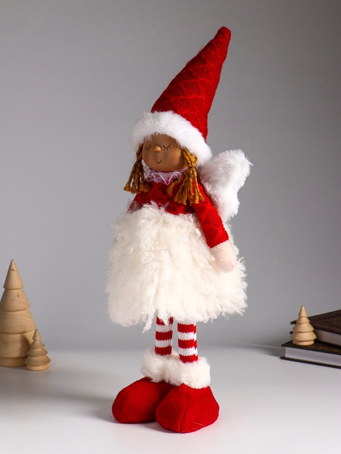 Кукла интерьерная текстильная «Ангелочек в меховой юбочке и красном колпаке»новинка -40%