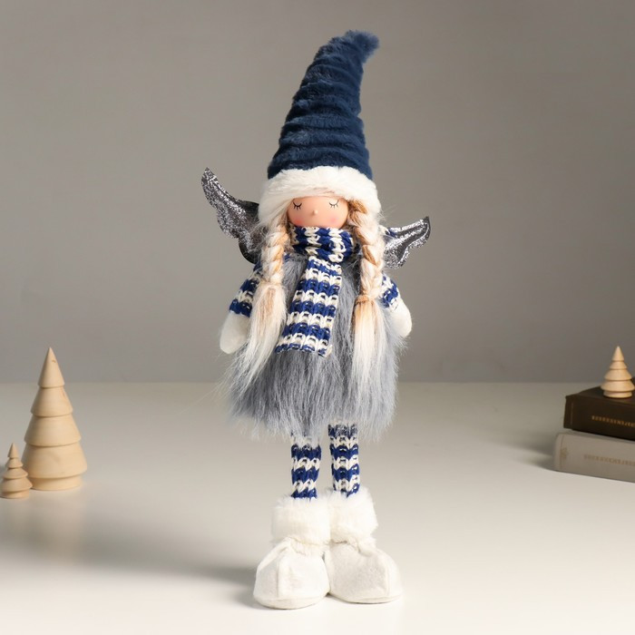 Кукла интерьерная текстильная «Ангелочек в серо-синем наряде, серебристые крылья»новинка -40%