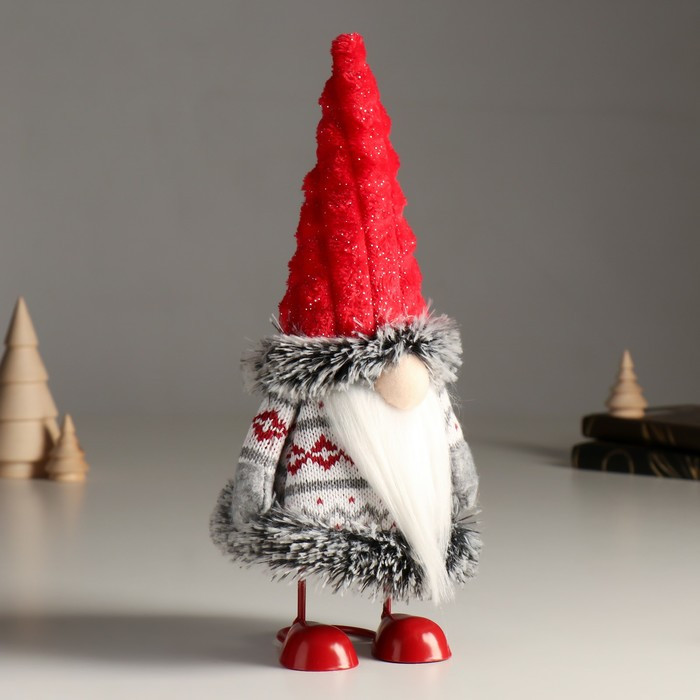 Кукла интерьерная текстильная «Дед Мороз в вязаном кафтане с узорами»новинка -25%