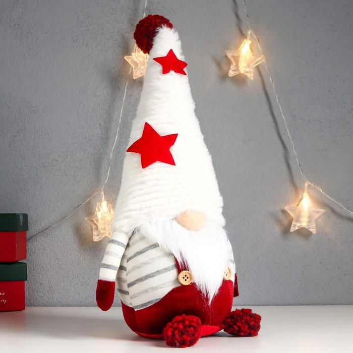 Кукла интерьерная текстильная «Дед Мороз в красном комбинезоне, в колпаке со звёздами»новинка -25%