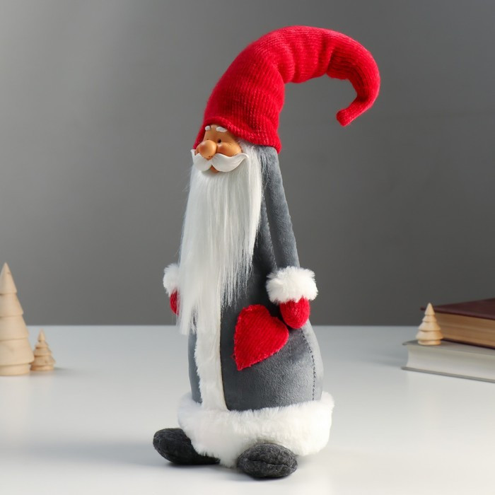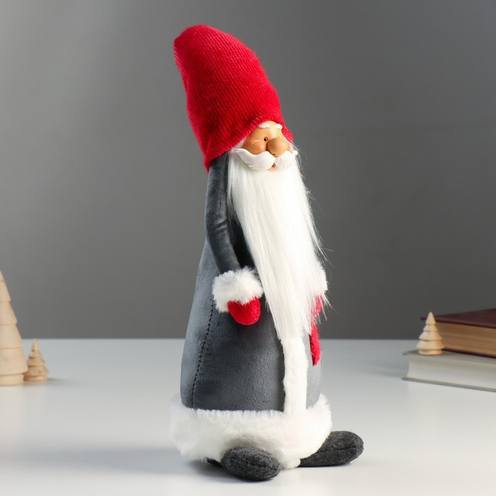 Кукла интерьерная текстильная «Дедушка Мороз в серой шубе и красном колпаке-шапке»новинка -25%