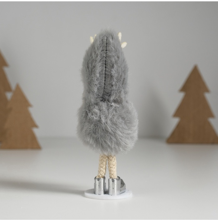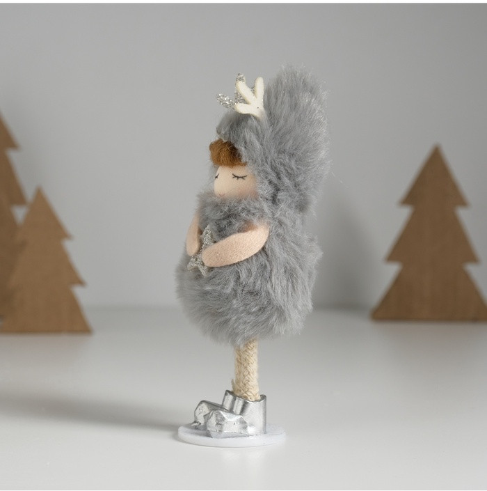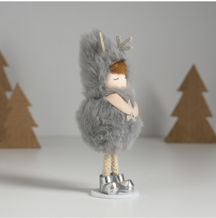 Кукла интерьерная текстильная «Малышка в серой мохнатой шубке в шапке с рожками»новинка -25%