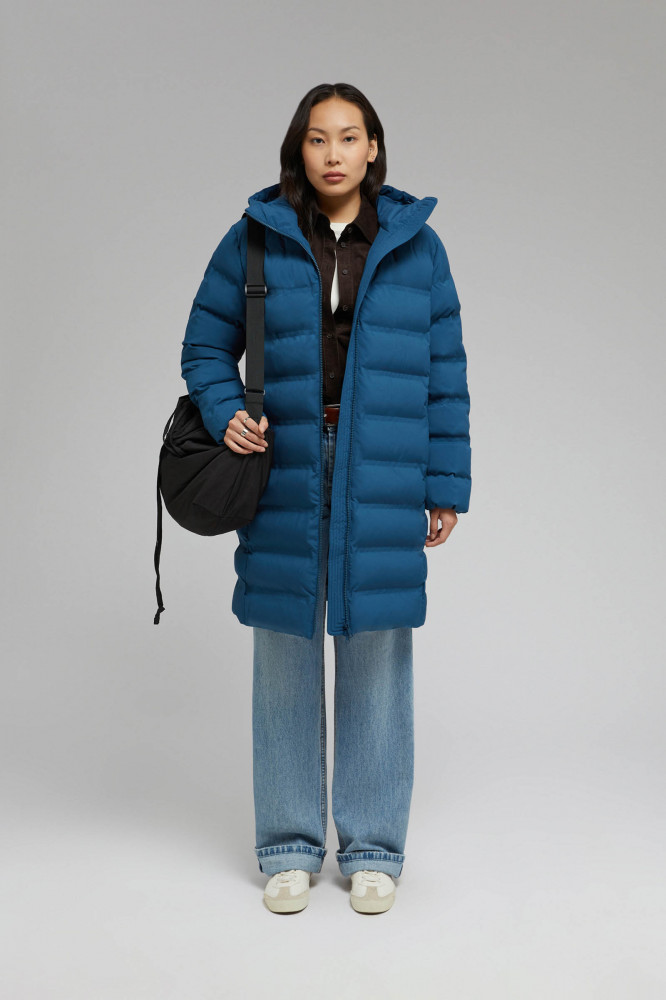 Стеганое утепленное пальто из технологичной ткани с водоотталкивающей пропиткой отлично подойдет для межсезонья. Материал надежно защищает от дождя и ветра, устойчив к загрязнениям и отличается износостойкостью.