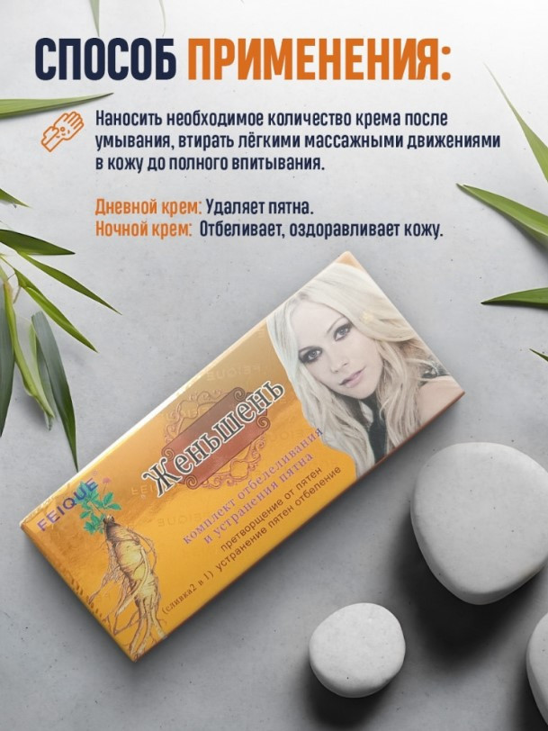 Feique Набор кремов Женьшень 2в1 для отбеливания кожи лица.