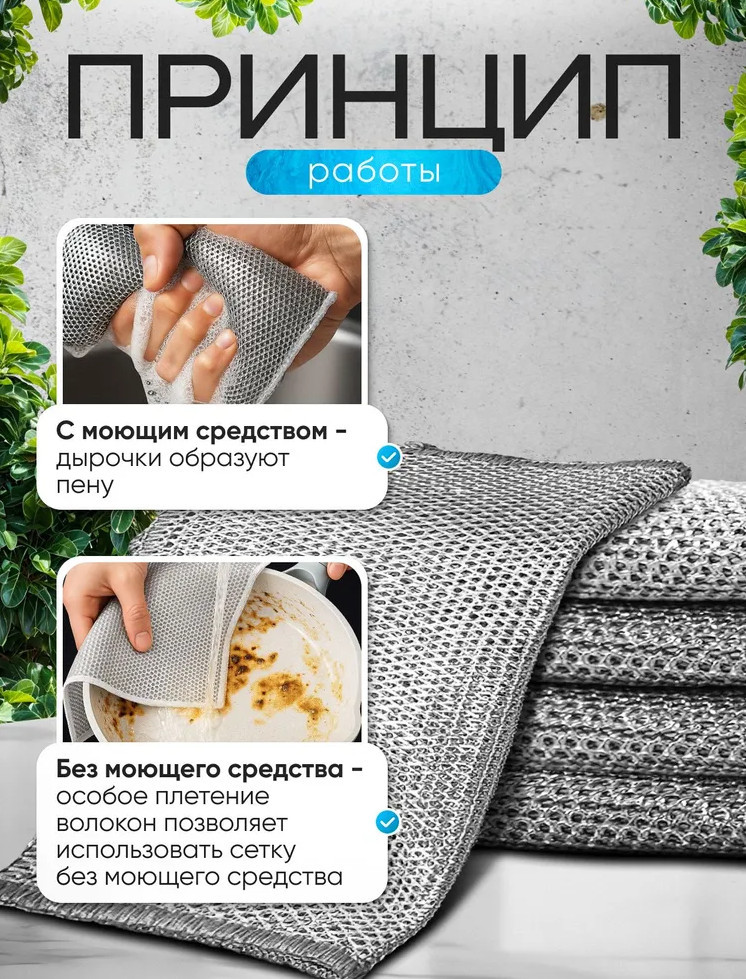 Устали от трудновыводимых пятен и засохших остатков пищи на посуде? Представляем вашему вниманию металлические губки для мытья посуды, которые станут надежными помощниками в каждом доме. Эти губки, выполненные в виде узелковой сетки, идеально подходят для эффективной уборки и делают процесс чистки легким и приятным занятием. Комплект из 4 губок в сером металлическом цвете позволит вам всегда иметь под рукой незаменимого помощника для уборки. Размер каждой губки 20×20 см, что обеспечивает удобство в использовании и охват большой площади поверхности. Компактная упаковка, размером 200×200×5 мм и весом всего 25 г, экономит место и удобна для хранения. |